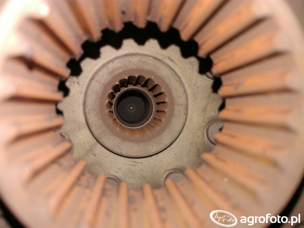 Na tym zdjęciu z kolei widać w głębi zużyty frez wewnętrzny tarczy WOM. Frezarka ścięty w trójkąt i widać że pochylony wyraźnie w jedną stronę.\n\nReasumując Ciągnik po tych obserwacjach intensywnie był eksplaatowany jeśli chodzi o tarczę jezdna i tarczę WOM. Łożysko oporowe, wałek WOM wraz z kompletnym dociskiem i dwiema tarczami kwalifikowane są do wymiany.