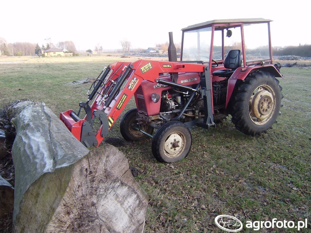 Ursus C-330 to lekki ciągnik rolniczy o mocy około 30 KM, napędzany dwucylindrowym silnikiem wysokoprężnym S-312C o pojemności 1960 cm³, produkowany w latach 1967–1987 w Zakładach Mechanicznych Ursus. Prosta, niesynchronizowana skrzynia biegów 6 2 zapewnia wystarczający zakres przełożeń do typowych prac w gospodarstwie, a masa własna około 1900 kg sprzyja zwrotności podczas manewrowania z ładowaczem czołowym typu TUR 4. Tylni TUZ o udźwigu w granicach 800–1200 kg umożliwia współpracę z lekkimi maszynami zawieszanymi, natomiast ładowacz służy do obsługi materiałów sypkich, obornika czy bel. Ze względu na prostą budowę, tanie części i niskie zużycie paliwa, przybliżone ceny używanych egzemplarzy Ursusa C-330 w Polsce mieszczą się zwykle w przedziale 15 000–35 000 zł, zależnie od stanu technicznego i wyposażenia dodatkowego.