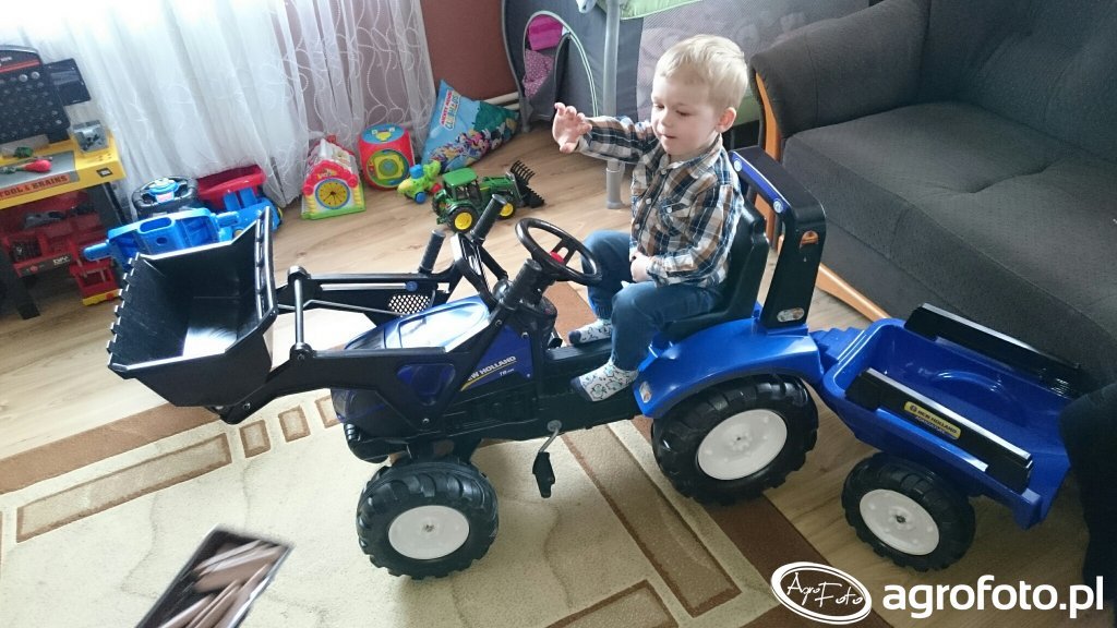 bialy2005 585 Opublikowano 9 Kwietnia 2017 No od małego chce tylko do ciagników i jezdzic, jak to on mówi na ciagniki i inne maszyny "Kumbaj" wiec dziadek i babcie sprezentowali na urodziny Kupiony na aledrogo cos około 700zł był jeszcze class, i inne marki ale bez przyczepy lub bez ładowacza. Wyobrazcie sobie ze Top Agrar przeglada dziennie kilkadziesiat razy i kazdy obrazek z ciagnikiem, ładowarka i kombajnem jest jedno słowo "kombajn" i gazeta po tygodniu nadaje sie tylko do utylizacji Filmiki na You Tube z moimi maszynami to może ogladac non stop i ciagle słowo "Kombajn":) Po prostu ma bzika na tym punkcie, aby mu sie nie odmieniło jak podrośnie Odnośnik do komentarza https://www.agrofoto.pl/forum/gallery/image/685496-new-holand-t8-435-przyczepa/#findComment-2122400