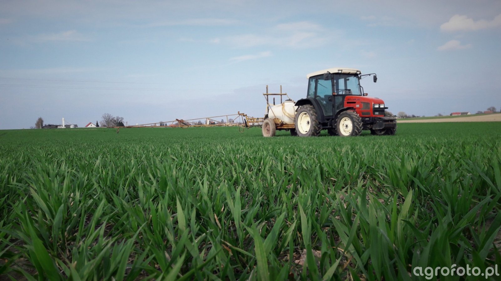 Ciągnik rolniczy SAME Roller 50 wyróżnia się kompaktowym i zwrotnym designem, idealnym do pracy w małych gospodarstwach oraz w rolniczych aplikacjach specjalistycznych. Napędzany jest 50-konnym silnikiem wykonanym przez SAME, o czterocylindrowej konstrukcji i pojemności 3,0 litra, co zapewnia niezawodność i efektywność pracy. Model wyposażony jest w mechaniczną skrzynię biegów z 12 przełożeniami do przodu i 3 do tyłu, umożliwiającą precyzyjne dostosowanie prędkości do warunków na polu. Jego masa własna wynosi około 2450 kg, co zapewnia stabilność podczas pracy z implementami. W okresie produkcji od 1996 do 2000 roku, Roller 50 cieszył się popularnością ze względu na funkcjonalność i niskie koszty eksploatacji. Ceny używanych egzemplarzy na rynku polskim kształtują się przybliżenie w przedziale od 30 000 do 40 000 złotych, w zależności od stanu technicznego. Na zdjęciu, widoczny opryskiwacz polowy harmonijnie współpracuje z tym modelem, stanowiąc efektywne rozwiązanie do ochrony roślin, co czyni całość idealnym zestawem do zróżnicowanych zadań polowych.