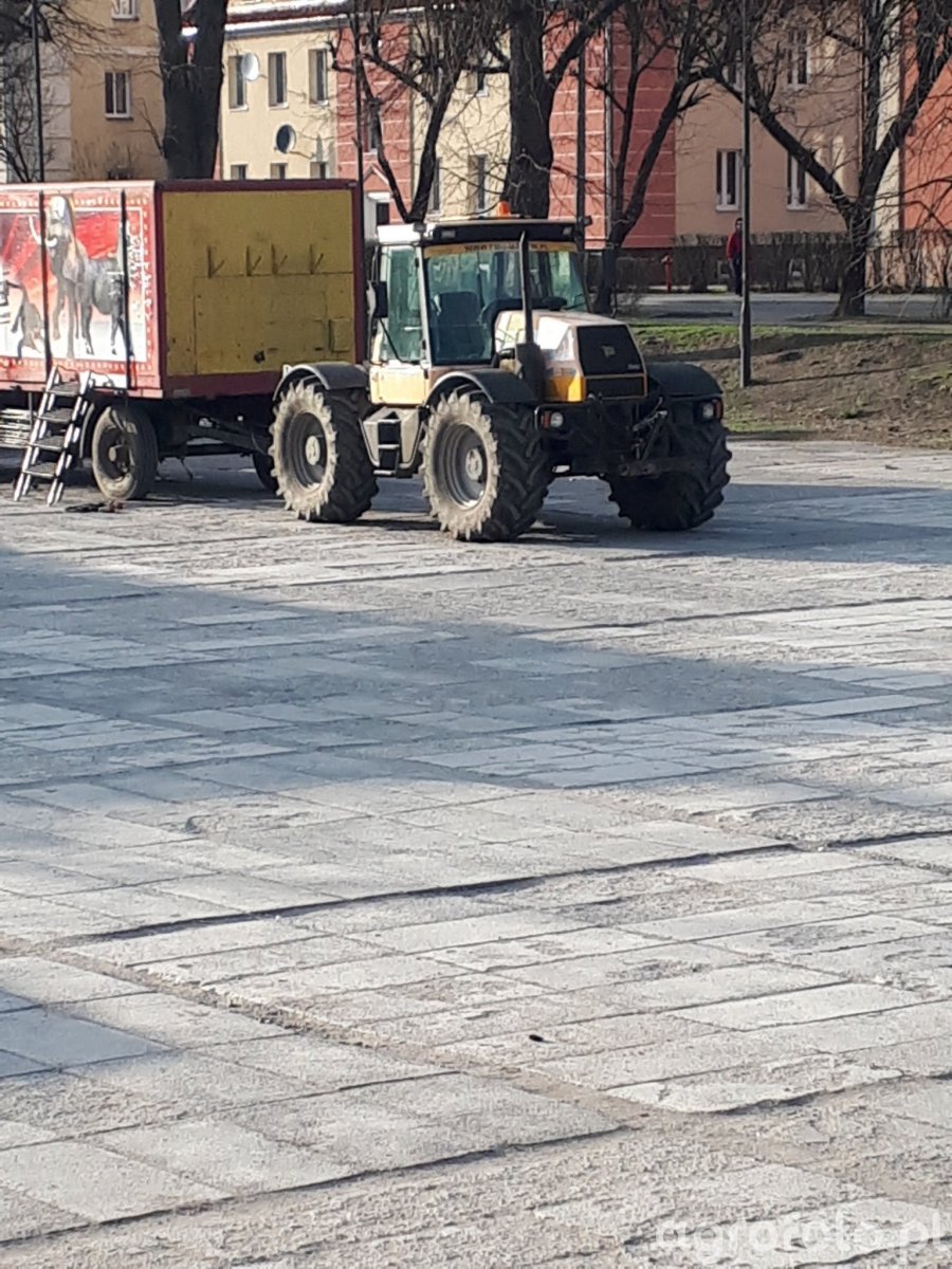 Na zdjęciu widoczna jest maszyna JCB 155-65, która działa na terenie gospodarstwa. Ciągnik ten wykazuje solidne parametry techniczne, dzięki którym z łatwością radzi sobie w różnorodnych zastosowaniach rolniczych. Jest napędzany silnikiem o mocy 60 KM, co umożliwia efektywne wykonanie zadań takich jak transport czy prace polowe. Maszyna wyposażona jest w skrzynię biegów 12/12, co pozwala na precyzyjną regulację prędkości w zależności od wymagań wykonywanej pracy. Na zdjęciu JCB 155-65 współpracuje z przyczepą rolniczą, co ilustruje jego wszechstronność w logistyce gospodarstwa. Taka konfiguracja jest szczególnie przydatna w przewożeniu materiałów rolniczych, gdzie elastyczność i odpowiednia moc silnika są kluczowe dla efektywności pracy.