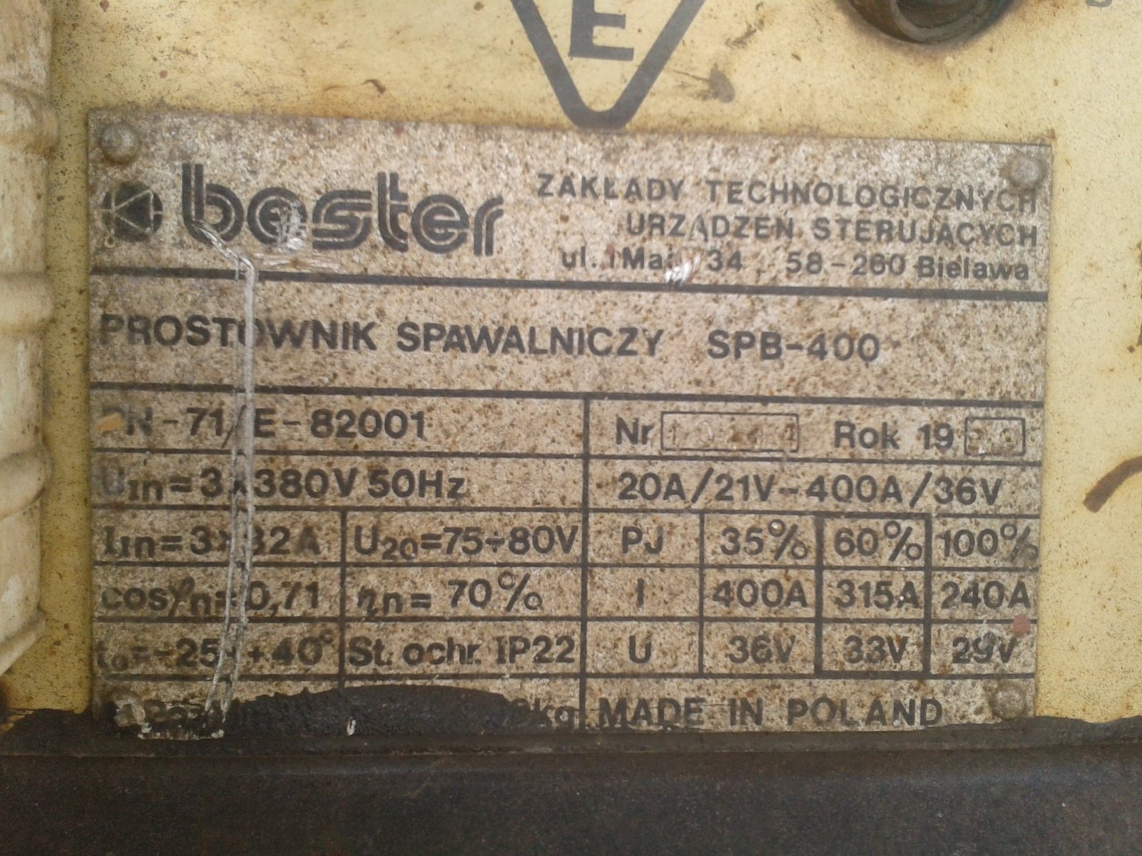 bears 588 Opublikowano 6 Października 2018 2 godziny temu, konteno napisał: i napiszcie jeszcze jak któryś wie dla jakiego prądu spawania podawany jest prąd pobierany z sieci na jednym i drugim modelu ? ta spb400 też na tyrystorach ? jak poznać po oznaczeniu modelu? Dla znamionowego... Co do sterowania to po oznaczeniu nie dowiesz się jak została skonstruowana. Ogólnie stary typ "szafa" były na transduktorach z opornicą do sterowania prądem spawania, później taczka i zależnie od modelu z transduktorem i transformatorem spawalniczym w jednym, z transduktorem od dzielnie, na tyrystorach gdzie ta na tyrystorach najczęściej była jedno zakresowo bez przełącznika prądu spawania. Oczywiście wersji było mnóstwo, z elektronicznym wyświetlaczem prądu, do użytku w kopalniach (inne napięcie zasilania) i tak dalej. Odnośnik do komentarza https://www.agrofoto.pl/forum/gallery/image/731069-spawarka-bester-spb-315/#findComment-2383127