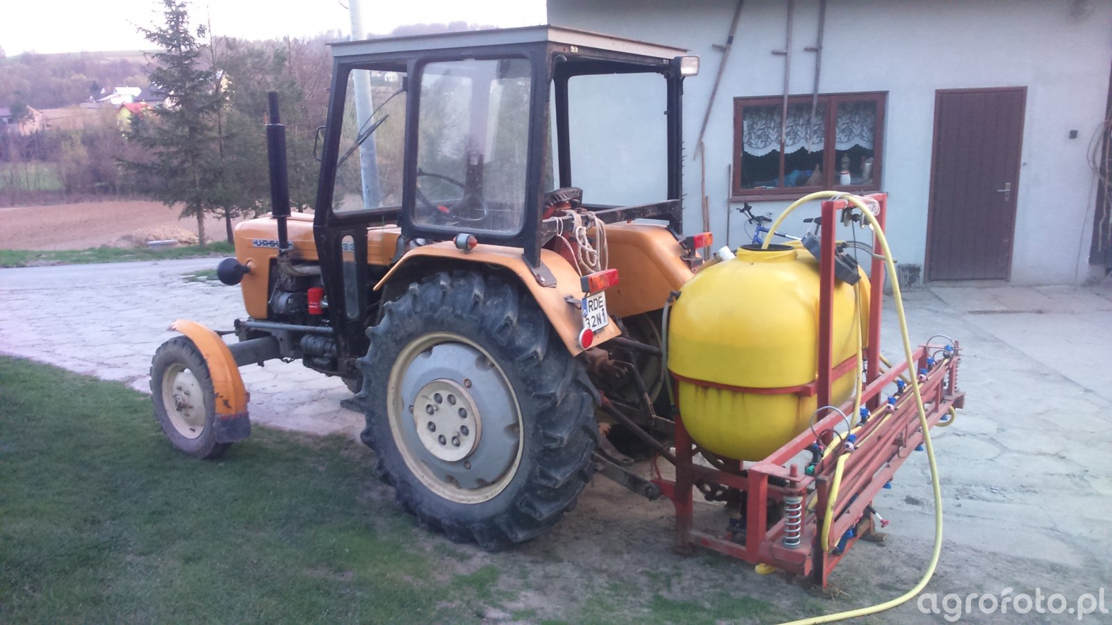 Ursus C-330 podczas prac w gospodarstwie współpracuje z opryskiwaczem polowym, wykorzystując swoją prostą, ale trwałą konstrukcję do obsługi lekkich i średnich zabiegów ochrony roślin. Ciągnik wyposażony jest w dwucylindrowy silnik wysokoprężny S-312C o pojemności 1960 cm³ i mocy około 30 KM, produkcji Zakładów Mechanicznych Ursus, co zapewnia niskie zużycie paliwa i dobrą trakcję przy niewielkiej masie własnej około 1900 kg. Mechaniczna skrzynia biegów z 6 przełożeniami do przodu i 2 wstecznymi pozwala dobrać odpowiednią prędkość roboczą do oprysku, a tylny trzypunktowy układ zawieszenia (TUZ) o udźwigu około 900 kg bezproblemowo utrzymuje zawieszany opryskiwacz. Model C-330 był produkowany w latach 1967–1987 i do dziś pozostaje popularny na małych i średnich gospodarstwach, gdzie używane egzemplarze osiągają w Polsce przybliżone ceny od 15 000 do 30 000 zł w zależności od stanu technicznego i wyposażenia.