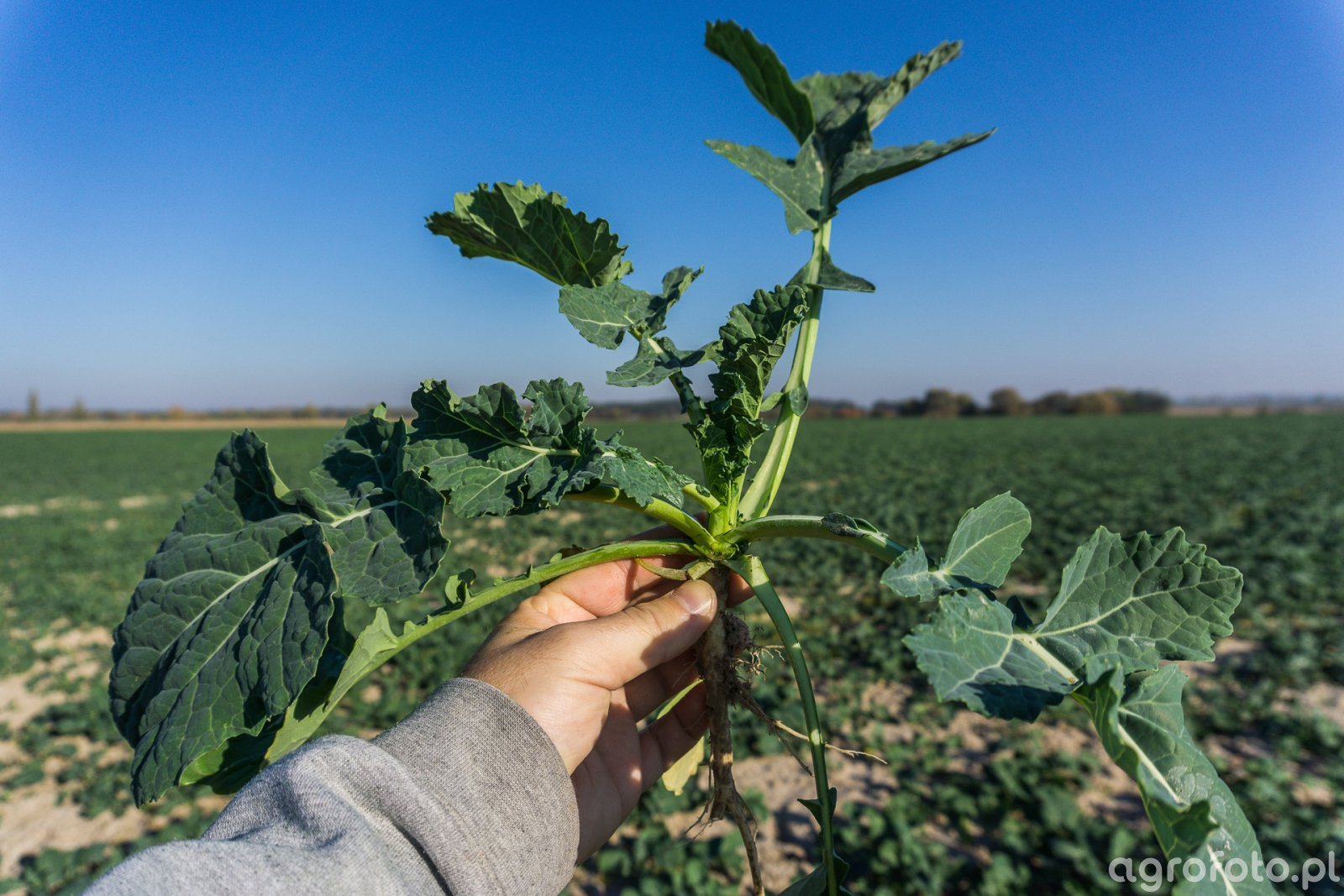 W większości jest w fazie 8 liści, czasem mniej na fragmencie pola po jęczmieniu