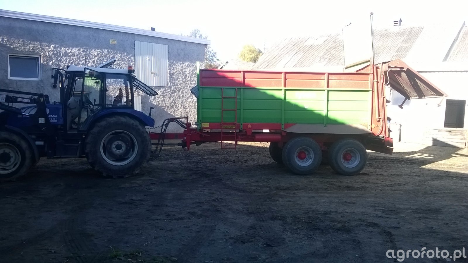 Ciągnik Farmtrac 675 DT pracuje na placu gospodarstwa, wykorzystując swoją moc 75 KM, co pozwala na efektywne wykonywanie zadań z przyczepą rolniczą. Napędzany 3-cylindrowym silnikiem Perkins o pojemności 2.9 L, zapewnia niezawodność i wydajność w codziennych pracach rolniczych. Dzięki mechanicznej skrzyni biegów z 12 przełożeniami, operacje takie jak załadunek i transport są precyzyjnie kontrolowane i efektywne. Farmtrac, znany ze swojej wszechstronności, w tej konfiguracji doskonale współpracuje z wyposażeniem towarzyszącym, pomagając w zoptymalizowaniu pracy na gospodarstwie.