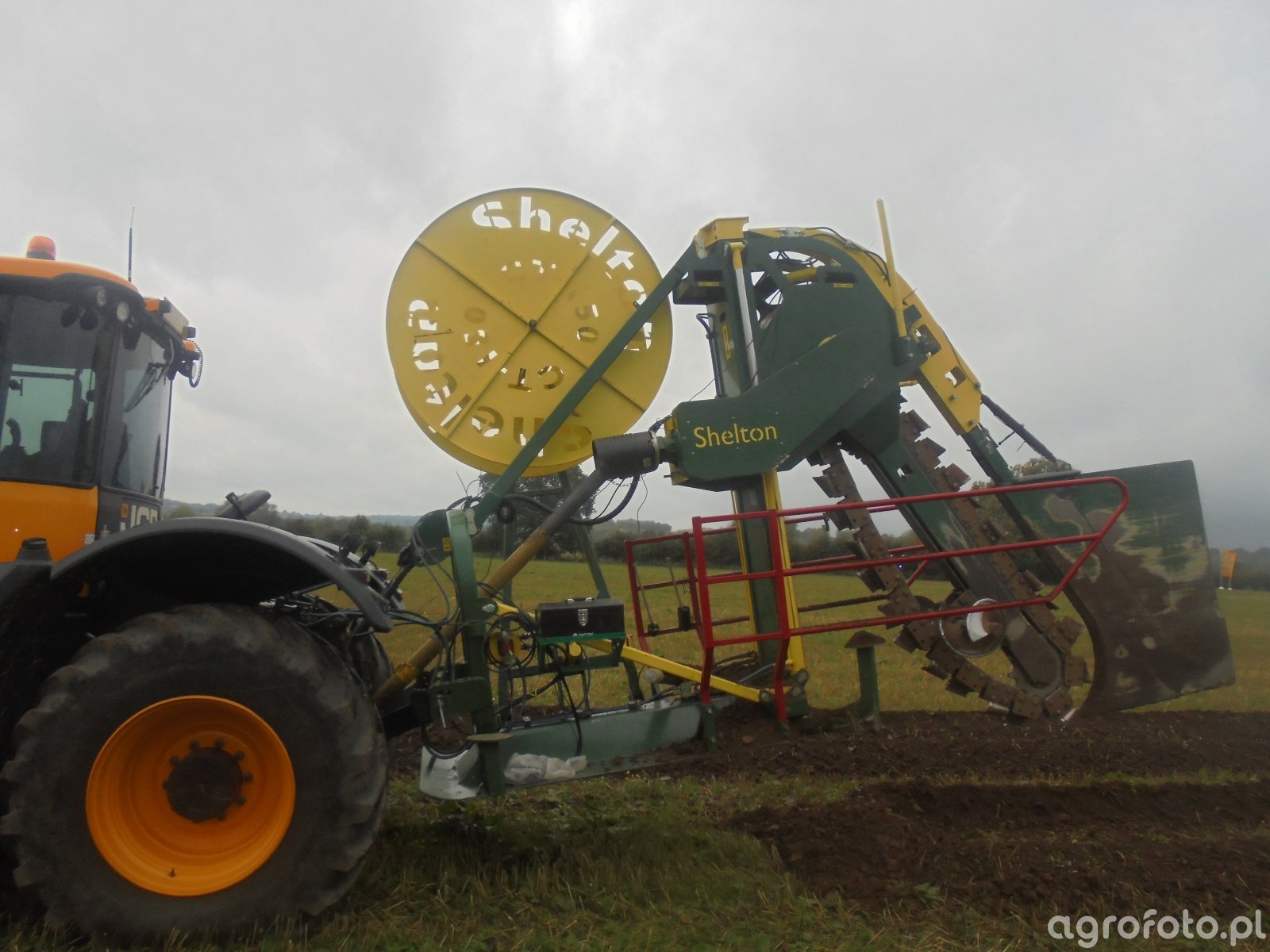Zdjęcie przedstawia ciągnik JCB 4190, będący zaawansowaną maszyną rolniczą. Wyposażony jest w silnik o mocy około 190 KM, co umożliwia efektywne wykonywanie różnorodnych prac polowych. Silnik produkcji JCB o dużej pojemności skokowej zapewnia nie tylko odpowiednią siłę, ale również ekonomiczną pracę. Ciągnik ma zaawansowaną skrzynię biegów, co przekłada się na płynne działanie w każdych warunkach terenowych. Na zdjęciu JCB 4190 pracuje na polu, współpracując z innymi maszynami, co ilustruje jego funkcjonalność i wszechstronność zastosowań w rolnictwie. Znacząca moc oraz wydajność czynią go idealnym wyborem do współpracy z różnymi narzędziami i maszynami wspomagającymi wszelkie operacje rolnicze.