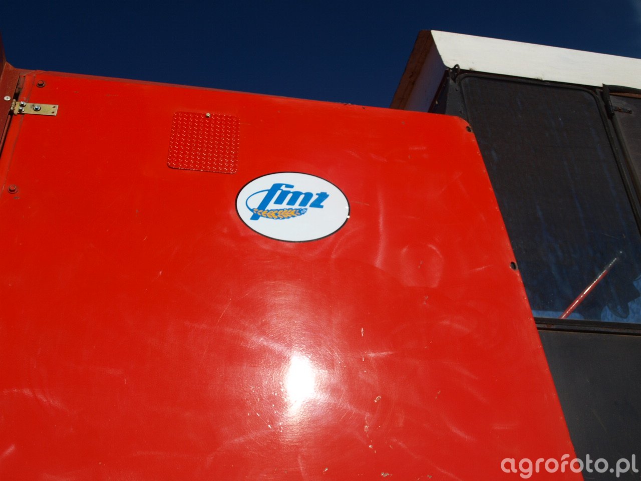 Nie jestem w stanie dokładnie zidentyfikować kombajnu ze zdjęcia, ale mogę przygotować ogólny opis. Jeśli analizujemy kombajn Bizon Super Z056, to typowe dane techniczne dla tej maszyny obejmują silnik o mocy około 100 KM, co pozwala na efektywne działanie systemu omłotu bębnowego. Zbiornik ziarna o pojemności 3000 litrów umożliwia wydajną pracę podczas żniw. Kombajn zazwyczaj wyposażony jest w heder z motowidłami, odpowiedni do koszenia zbóż na polach. Czerwona konstrukcja podkreśla specyfikę marki Bizon, znanej z solidnych maszyn rolniczych dedykowanych do pracy w różnorodnych warunkach polowych.