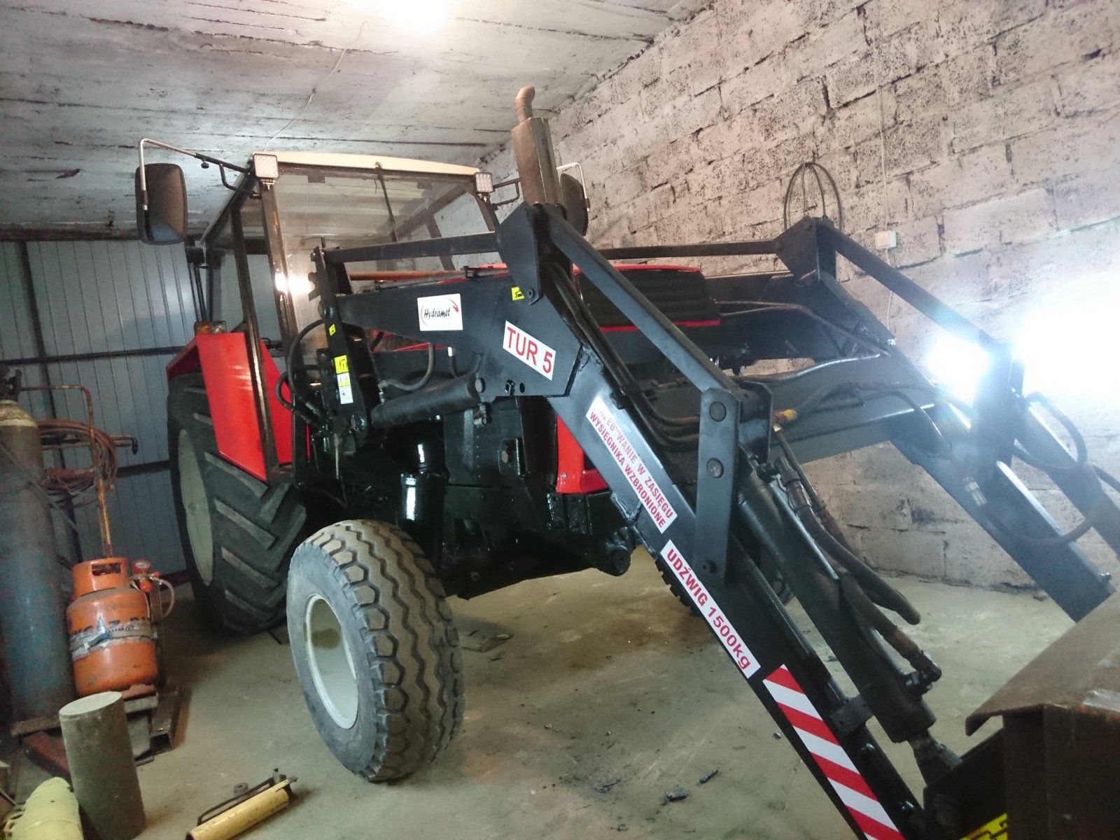 Ursus C-385 to ciągnik rolniczy klasy 80 KM, napędzany silnikiem Andoria 4C90 o mocy około 75–80 KM, czterocylindrowym, chłodzonym cieczą, o pojemności 3,9 l, współpracującym z mechaniczną skrzynią biegów 16/8 (z reduktorem) i tylnym mostem o udźwigu TUZ rzędu 3,5–4,0 t, co pozwala na agregowanie cięższych maszyn uprawowych i transportowych w typowym gospodarstwie. Maszyna produkowana była w latach 1971–1992 jako pierwszy polski ciągnik ciężkiej serii, a jej masa własna około 4,2 t zapewnia dobrą trakcję na polu i stabilność przy pracy z ładowaczem lub przyczepami. Charakterystyczna, kanciasta maska i prosta kabina z blaszanymi drzwiami oraz klasycznymi błotnikami dobrze oddają roboczy charakter tego modelu, często wykorzystywanego do orki, uprawy przedsiewnej, transportu płodów rolnych i prac na placu gospodarstwa. Przybliżone ceny używanych Ursusów C-385 na rynku wtórnym w Polsce mieszczą się zwykle w przedziale 25–45 tys. zł, w zależności od stanu technicznego, wyposażenia i roku produkcji.