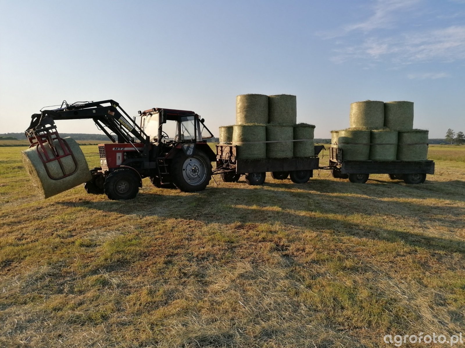 No tak, tylko że to są przyczepy małe, 3.5 tony baloty wystają po bokach, lekka nierówność czy ostrzejszy skręt i bal leży :)