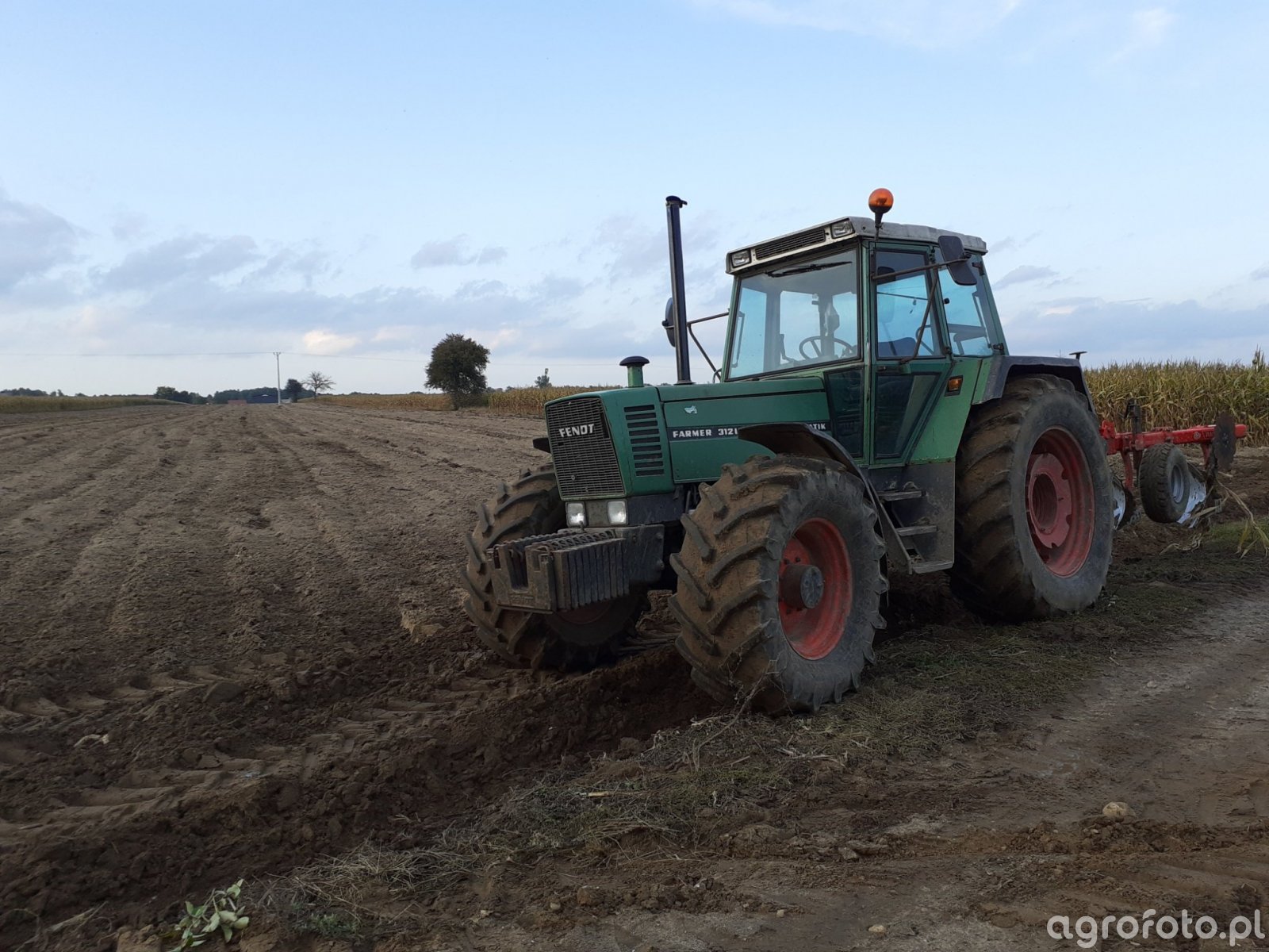 Ciągnik Fendt 312 LSA wykonuje orkę na polu, współpracując z pługiem obrotowym. Wyposażony w czterocylindrowy silnik MW oraz pojemność skokową 4,4 l, ten model oferuje moc 125 KM, co zapewnia efektywną pracę nawet w ciężkich warunkach glebowych. Mechaniczna skrzynia biegów 16/16 umożliwia precyzyjne dostosowanie prędkości i siły uciągu, co jest kluczowe przy głębokiej orce. Dzięki solidnej konstrukcji i odpowiednio dobranym parametrom technicznym, Fendt 312 LSA doskonale radzi sobie z wyzwaniami polowymi, obsługując pług o dużej szerokości roboczej, co optymalizuje czas i efektywność zabiegu uprawowego.