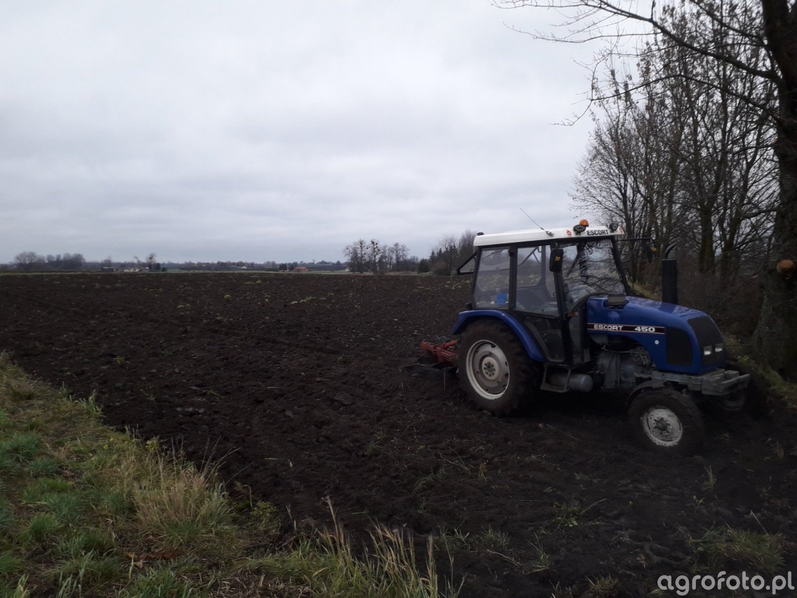 Ciągnik rolniczy Escort 450 pracuje na polu podczas orki, wykorzystując swoją moc 45 KM, co pozwala na efektywną współpracę z pługiem, nawet na wymagającym terenie. Wyposażony w silnik trzy-cylindrowy o pojemności 2.9 L, Escort 450 doskonale radzi sobie w trudnych warunkach polowych. Jego mechaniczna skrzynia biegów zapewnia precyzyjne dostosowanie prędkości do wykonywanej pracy, co jest kluczowe podczas równego prowadzenia pługa. Dzięki odpowiedniej mocy i konstrukcji, ten ciągnik Escort stanowi solidne narzędzie do podstawowych zadań rolniczych, wspierając codzienną pracę w gospodarstwie.