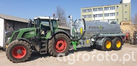 Ciągnik Fendt Vario 800, znany z wydajności i precyzji, współpracuje na placu gospodarstwa z wozem asenizacyjnym marki Joskin. Wyposażony w silnik o mocy 280 KM, ciągnik efektywnie napędza beczkowóz, co umożliwia szybki i sprawny transport płynnych nawozów. Dzięki nowoczesnej bezstopniowej skrzyni biegów, Fendt Vario 800 zapewnia płynność jazdy nawet w trudnych warunkach terenowych. Wysokie parametry techniczne tej maszyny pozwalają na skuteczną realizację skomplikowanych zadań rolniczych, a jej współpraca z Joskinem jest optymalna dla wydajnego zarządzania zasobami na farmie.