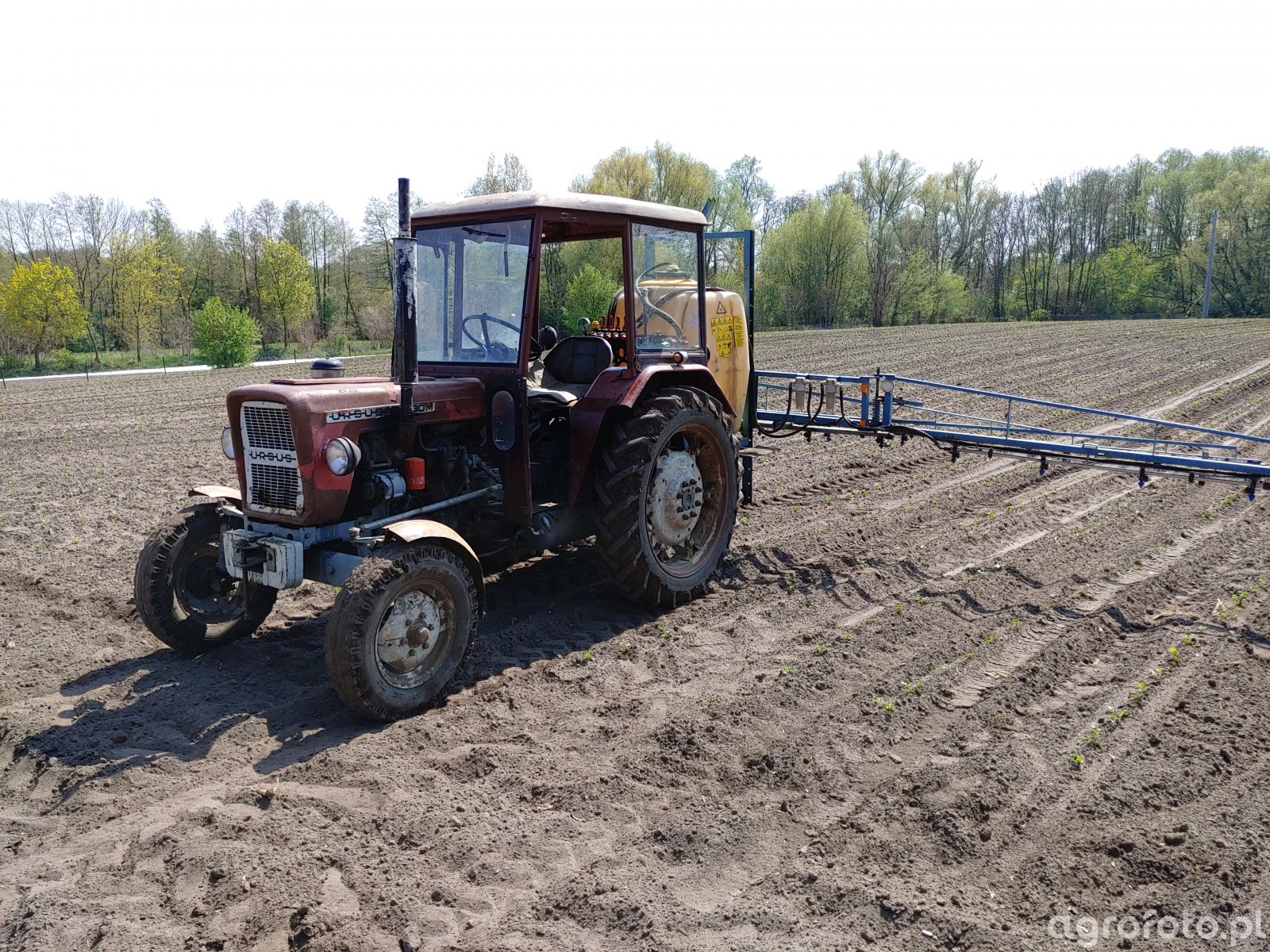 Ursus C-330 współpracuje z opryskiwaczem polowym Termit 400 l podczas oprysku upraw, wykorzystując pełnię możliwości lekkiego ciągnika z tej serii. Dwucylindrowy silnik wysokoprężny S-312C o pojemności 1960 cm³ rozwija moc około 30 KM, co przy prostej, mechanicznej skrzyni biegów 6 2 pozwala na precyzyjne dobranie prędkości roboczej do wymogów ochrony roślin. Masa własna Ursusa C-330 wynosi około 1900 kg, a udźwig tylnego TUZ sięga około 1200 kg, dzięki czemu zawieszany opryskiwacz Termit o zbiorniku 400 l jest stabilnie przenoszony nawet na nierównym polu. Model C-330 był produkowany w latach 1967–1987 w Zakładach Ursus i do dziś jest popularny w małych i średnich gospodarstwach. Przybliżone ceny rynkowe używanych egzemplarzy w Polsce mieszczą się zazwyczaj w przedziale od 15 000 do 30 000 zł, w zależności od stanu technicznego i wyposażenia.