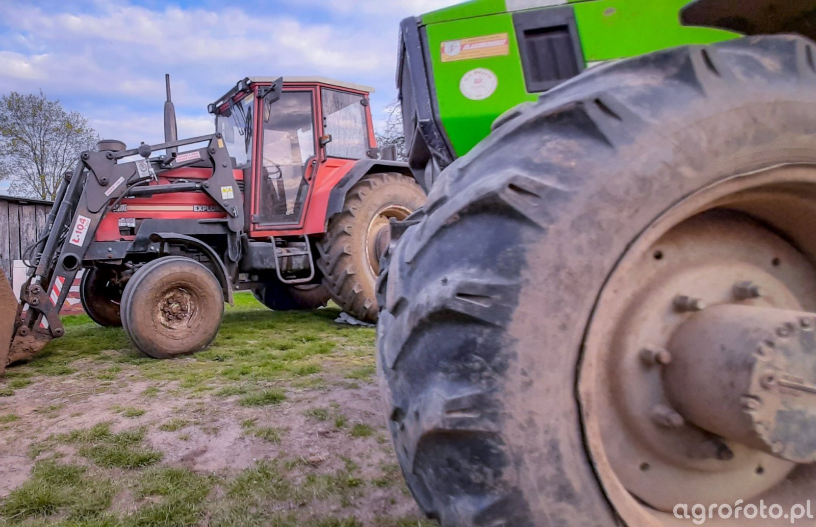 Ciągnik Deutz-Fahr, prawdopodobnie jeden z modeli serii 6, pracuje na placu gospodarstwa, korzystając z ładowacza czołowego. Wyposażony w silnik o mocy około 140 KM, produkcji Deutz AG, zapewnia wydajną pracę w codziennych zadaniach rolniczych. Dzięki 6-cylindrowej konstrukcji i pojemności skokowej wynoszącej 6.1 litra, jednostka napędowa charakteryzuje się płynnością i niezawodnością. Ciągnik współpracuje z marką Same, wykorzystując synergiczne zalety obu producentów. Jego mechaniczna skrzynia biegów, oferująca 24 przełożenia do przodu i do tyłu, umożliwia precyzyjne dostosowanie prędkości do specyfiki wykonywanej pracy. Maksymalny udźwig tylnego układu zawieszenia wynoszący 6200 kg ułatwia obsługę ciężkich narzędzi i maszyn towarzyszących, co czyni go wszechstronnym narzędziem w dużym gospodarstwie.