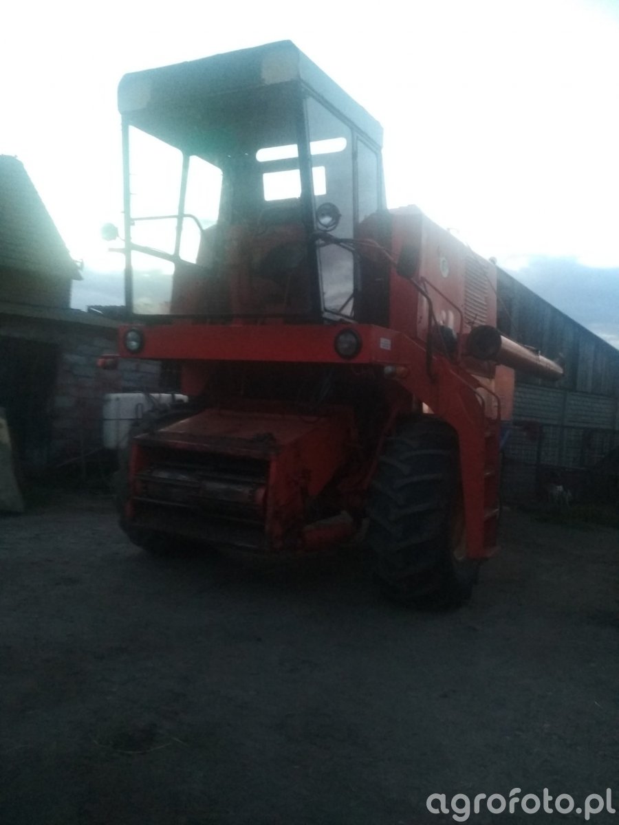 Kombajn Bizon Z056/3 jest typowym przedstawicielem polskich maszyn rolniczych, znanym z efektywności podczas żniw zbożowych. Prezentowany model znajduje się w stanie spoczynku na placu gospodarstwa, co sugeruje, że jest gotowy do kolejnych prac polowych. Wyposażony w silnik o mocy 100 KM, pozwala na skuteczne zasilanie bębna młócącego, co jest kluczowe dla jego wydajności. Zbiornik ziarna o pojemności 3000 litrów umożliwia długotrwałą pracę bez konieczności częstego opróżniania. Konstrukcja i kolorystyka charakterystyczna dla marki Bizon w połączeniu z klasycznym hederem z motowidłami wskazują na przeznaczenie do koszenia zbóż na ścierniskach całego kraju.