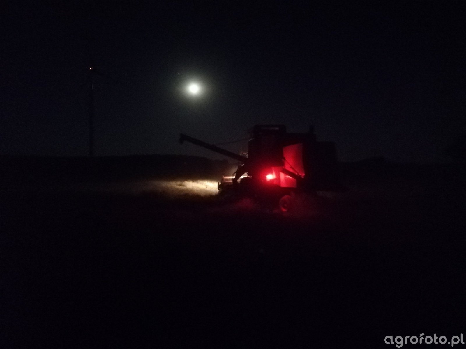 Kombajn Bizon Z056 Super podczas nocnych prac żniwnych na polu zboża. Maszyna ta jest napędzana sześciocylindrowym silnikiem o mocy około 100 KM, co zapewnia stabilną i efektywną pracę w wymagających warunkach polowych. Wyposażony w heder o szerokości 4,2 metra z motowidłami, Bizon Z056 doskonale radzi sobie z koszeniem zbóż na dużych obszarach. Widoczna na zdjęciu praca nocą podkreśla zdolność tego kombajnu do nieprzerwanego działania, co jest kluczowe podczas intensywnego okresu żniw. Zbiornik ziarna o pojemności 3 200 litrów pozwala na dłuższe operowanie bez potrzeby częstego wyładunku.