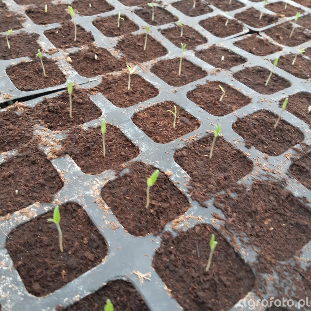 Wysiewany 26-27 kwietnia, 22 stopnie utrzymywane cały czas. Odmiana Aphem.