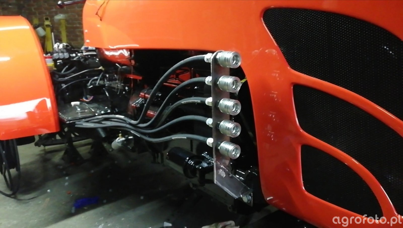 Listwa z wyjściami hydraulicznymi na przodzie. Tak samo jak z tyłu para do siłownika dwustronnego, para zatrzaskowa i jedno jednostronnego. https://youtu.be/d2_mHDVDdco
