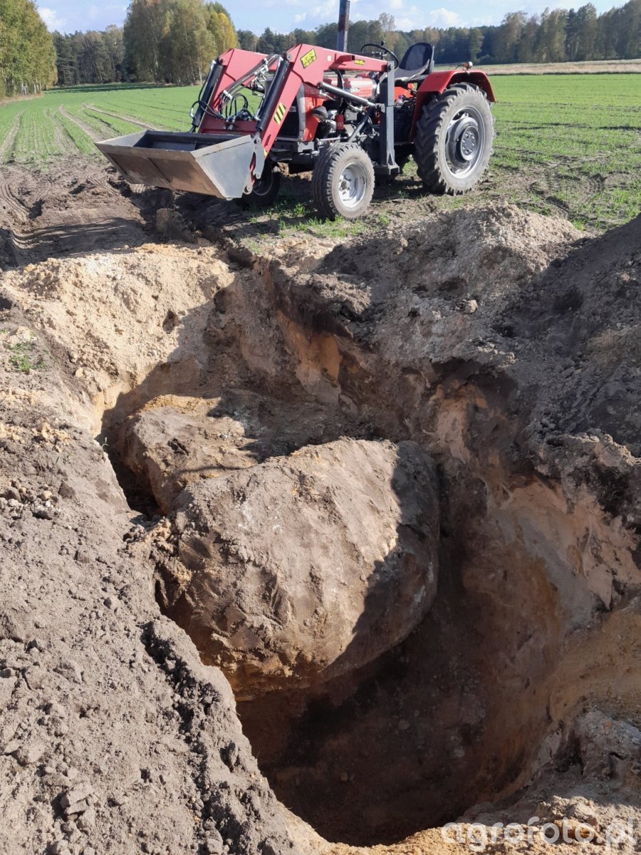 Podkopane doły na 1,5 i kamienie przysypane 0,5m ziemi , powinno wystarczyć. C330 dała radę zasypać i wyrównać teren.
