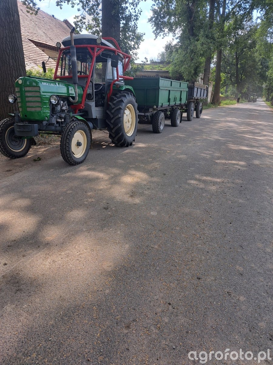 Ursus C-4011 z serii ciężkiej współpracuje z dwuosiową przyczepą rolniczą podczas transportu zboża na placu gospodarstwa, wykorzystując swoją moc około 52 KM z czterocylindrowego, wolnossącego silnika wysokoprężnego S-4003 o pojemności 3,3 l. Klasyczna, niesynchronizowana skrzynia biegów 6 2 pozwala dobrać przełożenia zarówno do lekkiego transportu, jak i manewrowania z ładunkiem w ograniczonej przestrzeni podwórza. Masa własna ciągnika na poziomie około 2,8 t zapewnia wystarczającą stabilność przy pracy z załadowaną przyczepą, wspieraną przez tylny TUZ o udźwigu około 1,2 t, wykorzystywany na co dzień do maszyn uprawowych. Model C-4011 produkowany był w latach 1965–1970 i obecnie, jako używany, osiąga w Polsce przybliżone ceny w zakresie 15–30 tys. zł w zależności od stanu technicznego i wyposażenia.