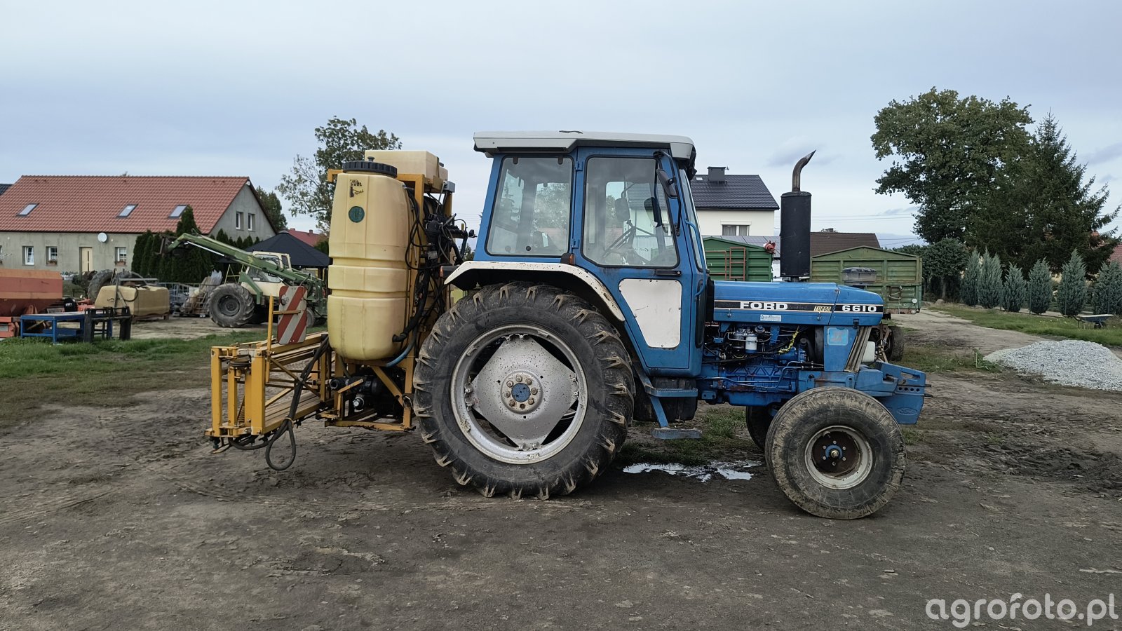 Ciągnik Ford 6610 współpracuje z opryskiwaczem Dubex 2S na placu gospodarstwa, prezentując swoje znakomite właściwości w pracy terenowej. Wyposażony w 4-cylindrowy silnik o pojemności 4,4 litra, Ford 6610 dysponuje mocą około 82 KM, co pozwala na efektywne wykonywanie zadań rolniczych. Mechaniczna skrzynia biegów 8/2 umożliwia precyzyjne dostosowanie prędkości do wymagających warunków pracy. Dzięki solidnej konstrukcji i zdolności do manewrowania w trudnym terenie, ciągnik zapewnia niezawodność podczas współpracy z Dubex 2S w operacjach związanych z ochroną roślin.