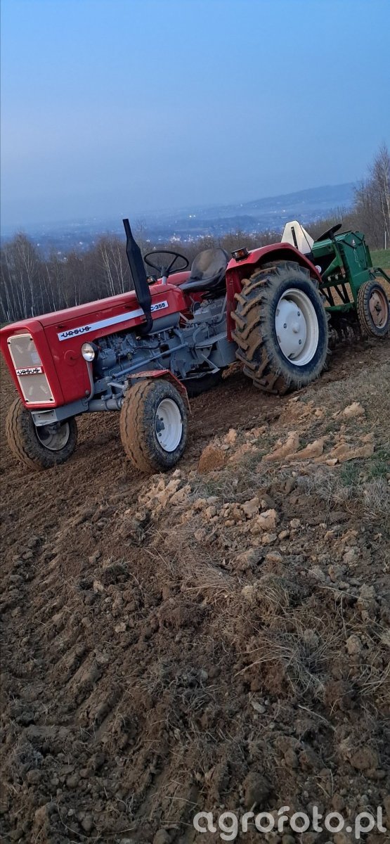 Ursus C-355 współpracuje z mechanicznym siewnikiem zbożowym Amazone D7 typ 25 podczas przygotowania pola do siewu, wykorzystując klasyczny, prosty układ napędowy do lekkich i średnich prac uprawowo-siewnych. Ciągnik produkowany w latach 1971–1975 rozwija około 52 KM z czterocylindrowego silnika S-4003 o pojemności 3,3 l, chłodzonego cieczą i zasilanego wtryskiem pośrednim, co zapewnia ekonomiczną pracę z maszynami zawieszanymi. Mechaniczna skrzynia biegów 8 2 z reduktorem umożliwia dobór odpowiedniej prędkości roboczej do siewu zbóż, a masa własna rzędu 2600–2700 kg stabilizuje zestaw na uwrociach i przy pracy na pochyłościach. Tylny TUZ o udźwigu około 1,5 t bez problemu przenosi ciężar Amazone D7, zapewniając równomierne zagłębianie redlic. Na rynku wtórnym w Polsce przybliżone ceny Ursusa C-355 wahają się obecnie w granicach 20–35 tys. zł w zależności od stanu technicznego i ewentualnej modernizacji.