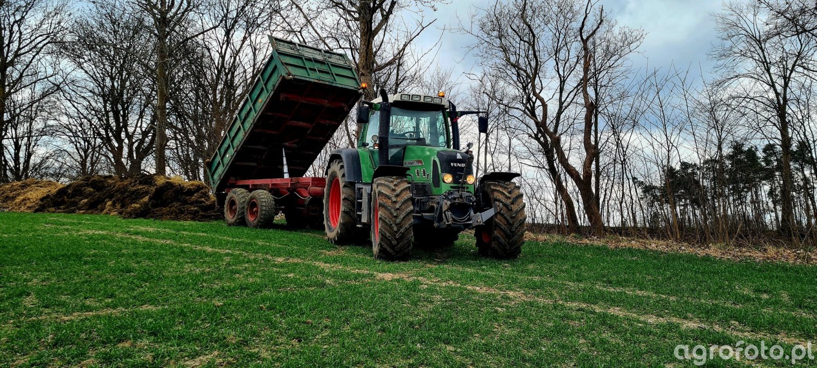 Ciągnik Fendt 716 Vario porusza się dynamicznie po polu podczas rozrzucania obornika. Wyposażony w 6-cylindrowy silnik o pojemności 6.1 L i mocy nominalnej 162 KM, zapewnia efektywność i wydajność pracy. Innowacyjna skrzynia biegów typu bezstopniowego Vario umożliwia płynną zmianę prędkości, co jest kluczowe podczas precyzyjnego manewrowania z przyczepą rolniczą. Taki zestaw doskonale sprawdza się w ciężkich warunkach polowych, dzięki czemu Fendt 716 Vario stanowi niezastąpiony element gospodarki rolnej, ułatwiając pracę w trakcie kampanii nawożenia.