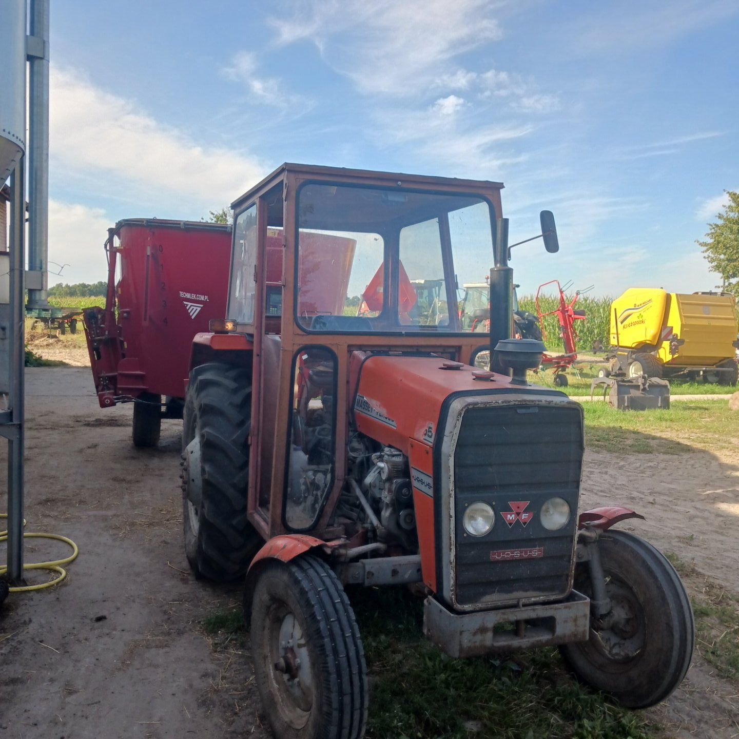 Karol6130 11516 Opublikowano 22 Sierpnia Może kiedyś Prasa ma swoje miejsce pod dachem Teraz stoi bo 3 pokos zbieram Zające nie zobaczą bo kukurydza rośnie Odnośnik do komentarza https://www.agrofoto.pl/forum/gallery/image/843428-massey-ferguson-255/#findComment-3175588