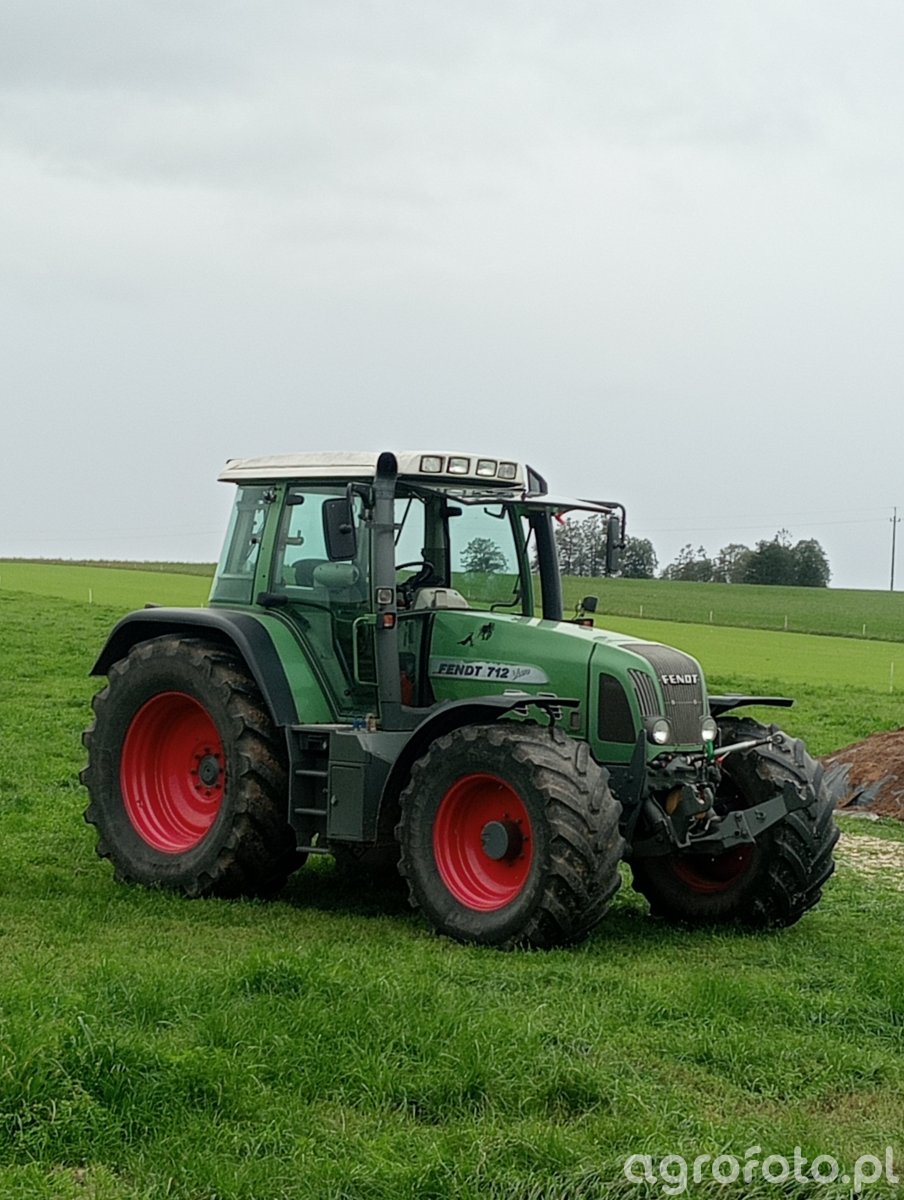 Ciągnik Fendt 712 Vario pracuje na łące, pokazując swoje zaawansowane możliwości techniczne. Wyposażony w silnik sześciocylindrowy o pojemności 6,06 litra i mocy 150 KM, ten model zapewnia wydajną i niezawodną pracę w różnych warunkach polowych. Bezstopniowa skrzynia biegów Vario umożliwia precyzyjne dopasowanie prędkości do aktualnych potrzeb, co jest szczególnie przydatne przy operacjach wymagających dużej precyzji. Fendt 712 Vario współpracuje z inną maszyną na polu, demonstrując swoje zdolności do ciężkiej pracy i wszechstronność w zadaniach rolniczych. Dzięki solidnej konstrukcji i zaawansowanej technologii, ten ciągnik stanowi niezastąpione narzędzie w gospodarstwach rolnych, sprawdzając się w pracy na łąkach i polach.
