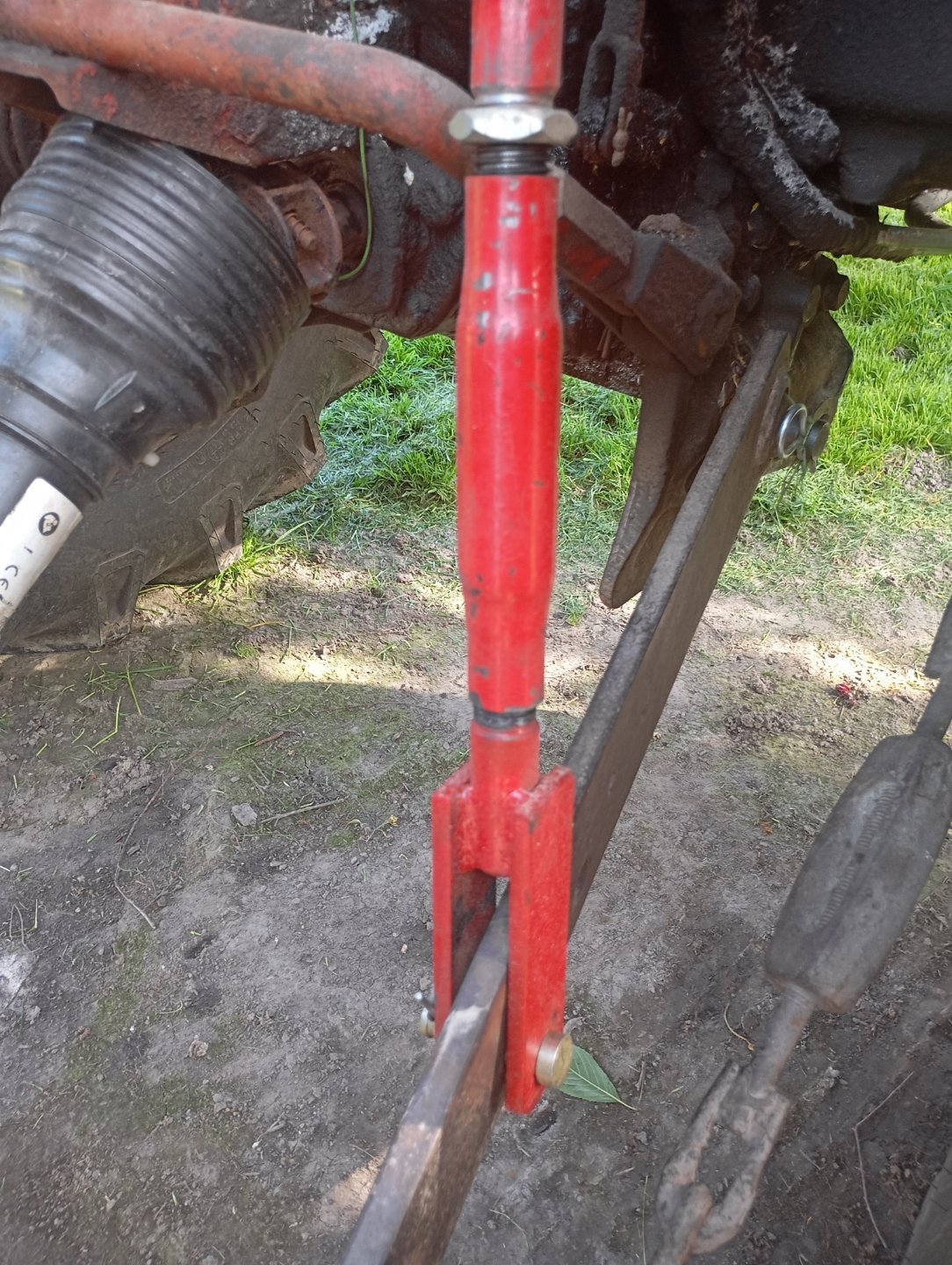 Mało brakło i siewnik wywaliłby się na plecy w transporcie. Dziadostwo jakich mało, luzy straszne, kontra krzywo nagwintowana i mimo zakontrowania rozkręca się.