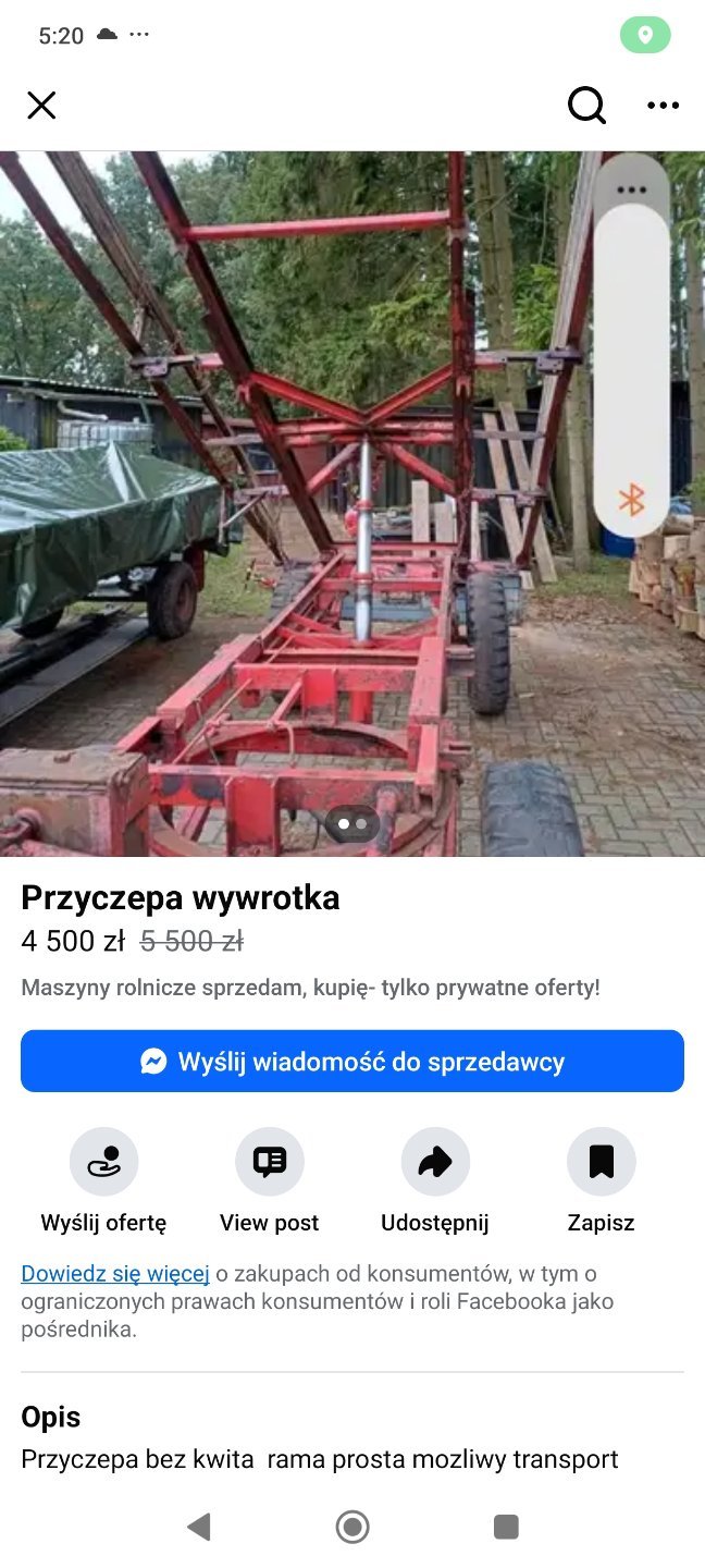 szymon09875 13952 Opublikowano 8 Listopada 12 minut temu, ZetorMisio napisał(a): Jakieś takie delikatne jak na 6 ton. W naszych Polskich d44 itp są takie ramy. No ale to stara , germańska stal 💪 Dużo takie cudo w PLN? Pewnie bez kwita? I jakie to ma/ będzie miało wymiary? Narazie bez, możliwe że Helmut znajdzie. 4 tys Wymiary 2.2 na 4.5 1 Odnośnik do komentarza https://www.agrofoto.pl/forum/gallery/image/844578-przyczepa/#findComment-3182929