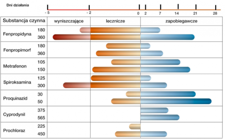 Fenpropidyna chyba bardziej elastyczna w stosowaniu w porównaniu z proquinazidem. Cyfludenamid mocniejsze działanie od fenpropidyny i proquinazidu jak i w działaniu zapobiegawczym działaniu i interwencyjnym.