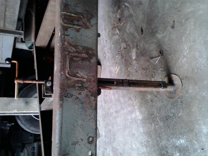 baniak mam nowiutki od auta [ bo stary przerdzewiał] zrobię zawias i wtedy podniosę za przód aby wymierzyć jaki trzeba siłownik wysoko to nie będzie się podnosiło ale tyle żeby swobodnie dało się nią pracować cyklop wtedy sobie poradzi . w piątek ogarnąłem elektrykę przyczepy . a teraz mam mniej czasu bo zaczynam pracę polowe mam do was pytanie gdzie kupić tą pokrywę od siłownika hamulcowego [zaznaczone na zdjęciu] krawędz musi mieć 20 cm średnicy -