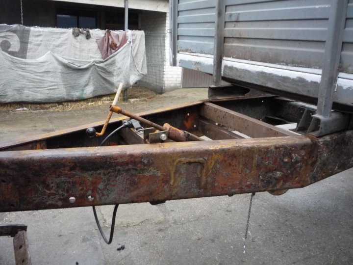 obliczyłem że jak wymienimy burty na nowe wysokie jak przednia ściana to będzie miała 14 m3 bo stare burty nadają się na złom we wtorek kupię co trzeba do instalacji hamulcowej i tylko zostanie czyszczenie i malowanie ale z tym muszę poczekać na dobrą pogodę dodam też zdjęcia jak podnosi się i hydrauliki