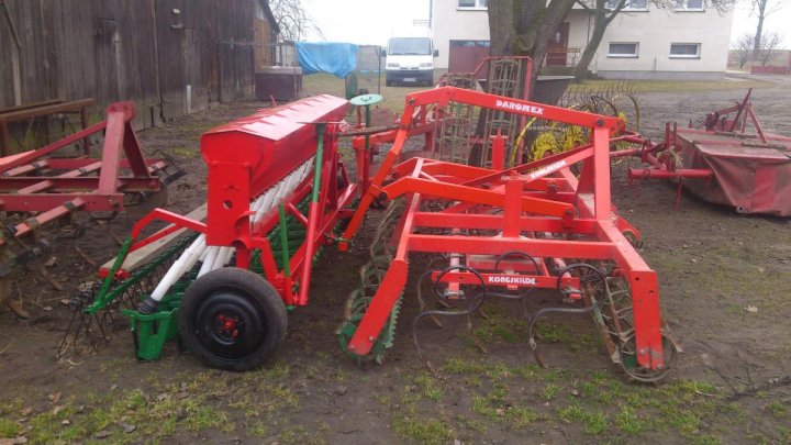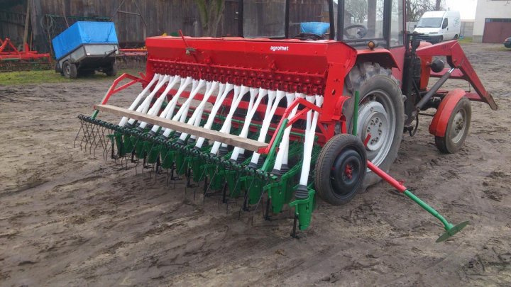 ale jeśli chodzi o koszt to myśle że max 1000zł bo teraz kupiliśmy 2 skrzynie od siewnika konnego ze złomu za 200zł bo będziemy przerabiać do agregatu ścierniskowego na siewnik do poplonów. Więc wydaje mi się że o wiele bardziej się opłaca zrobić taki niż kupić jakiś niemiecki za 3000 albo rozwalonego poznaniaka, siewnik nie ma żadnych luzów na trybach no i praktycznie niczym się nie różni od typowo ciągnikowego oprócz tego że nie ma skrzyni przekładniowej