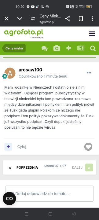 Słuchaj tam jest demokracja,praworządność i w ogóle uśmiechnięci wszyscy są i szczęśliwy wirus o tym wie i nie chce nikomu psuć humoru😅 co innego w tych niedemokratycznych państwach jak Słowacja czy Węgry,zobaczymy co u nas będzie miejmy nadzieję że nie będzie aż tak źle ... https://www.tygodnik-rolniczy.pl/mleko/mleczarnia/mlekovita-potrojnym-numerem-jeden-w-jakich-kategoriach-2529878