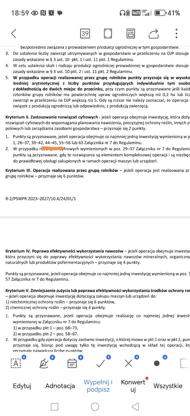 Panowie co to jest pkt 45. Zestaw testowy do pomiaru równomierności rozsiewu nawozów mineralnych? Ewentualnie co dobrać do kryterium II. Zastosowanie rozwiązań cyfrowych żeby nabić punkty? Maszyny jakie wybieram to siewnik do kuku, bezorkowiec, zbiornik na deszczówkę, chwastownik. -