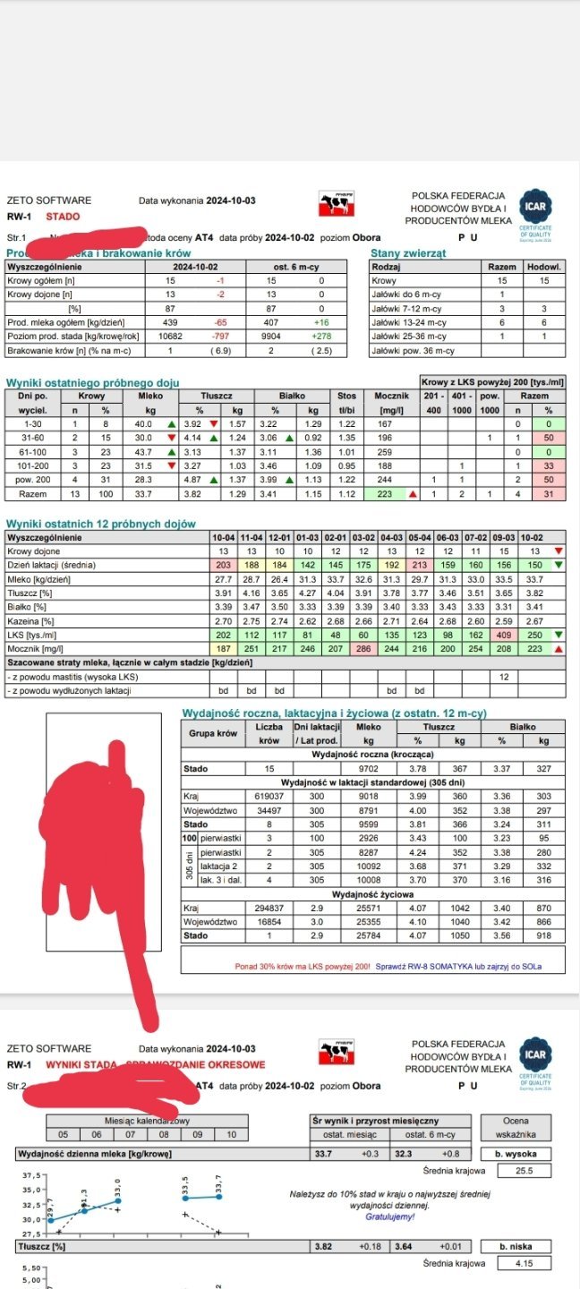 10. Parametry mleka to białko 3.4 a tłuszcz 3.8 wydajność z obory 9600 oczywiście jestem pod oceną raz w tygodniu stanowiska posypuję wapnem a słomę mam ze stodoły pianę stosuje z Gea i dipping również, rękawiczki i chusteczki są stosowane myślałem bardziej zaczepić startvackiem bo 3 lata temu zaszczepiłem mastibovackiem na próbę to nie dawałem rady z zapaleniami każda sztuka ma badane mleko przed zasuszeniem i zazwyczaj wychodzą streptokoki czyli działa szczepionka ubac