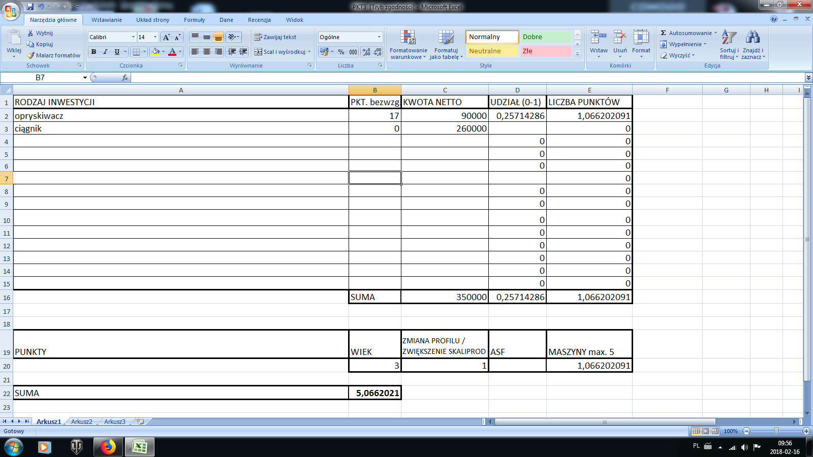 hmm. w poprzednim naborze składałem na ciągnik i opryskiwacz z tego kalkulatora wynika ze miałem 5,06 pkt . ( ja nie pamietam ile tam było ale mam oferty stare z cenami )