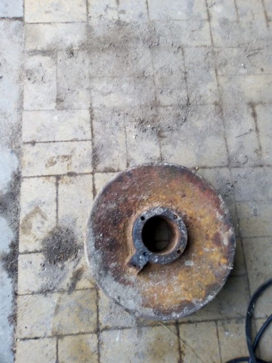 Waży 46 kg, dopiero w domu zobaczyłem, ze jakieś takie niesymetryczne. Za dużo będzie przy tym roboty, chyba sprzedam dalej... Co do tej piasty zaciskowej, to jeszcze nie miałem z nią do czynienia. Czy takie piasty sa znormalizowane? Czy jesli będę miał koło zamachowe od esa, takie jak poniżej, to piasta zaciskowa się przyda? Tokarz i tak będzie potrzebny.