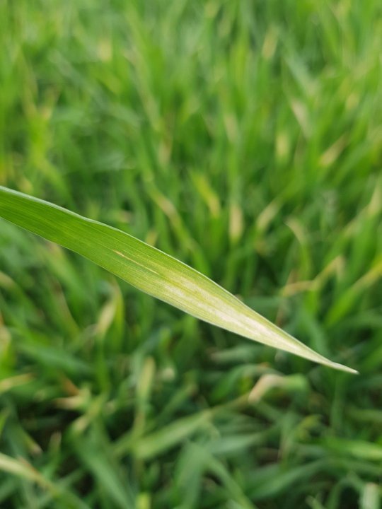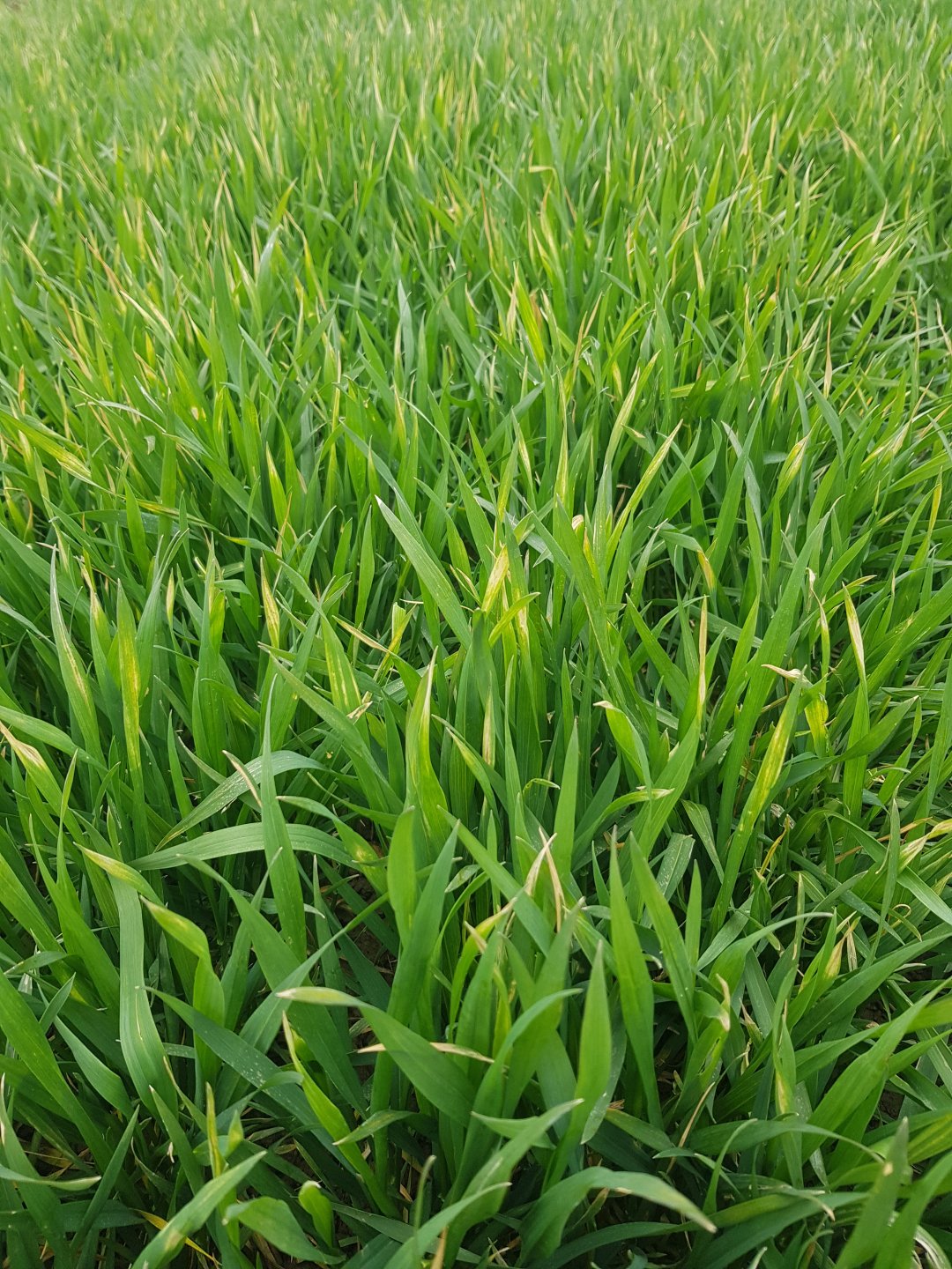 Co się stało z tą pszenicą? Z pszenżytem jest ok, pryskane tak samo. 8.04 t1 r1 chwasty, lecz nie wygląda na przypalenie. mniejsza pszenica też lepiej wygląda