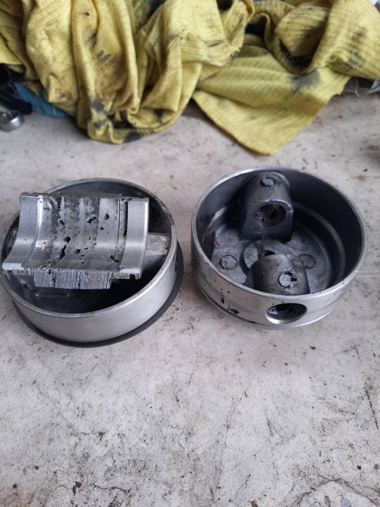 Trudno powiedzieć bo olej sobie wyciekł w czasie zimy. Oczywiście pompa zalana płynem do chłodnic na zimę. Teraz mam nowy tłok od producenta i nawet na nowym są wżery. Ręce opadają. Po lewej nowy po prawej stary.