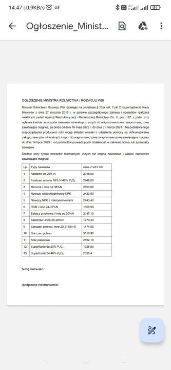 Poniżej zamieszczam średnie ceny od jakich liczona będzie różnica w zakupie nawozów do nowych dopłat nawozowych azotowe 26-28 chyba że ten mocniejszy to azotowe powyżej 30%