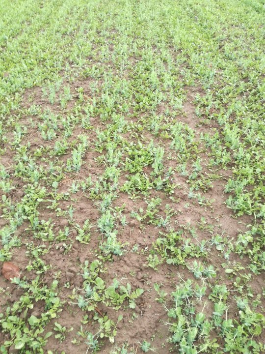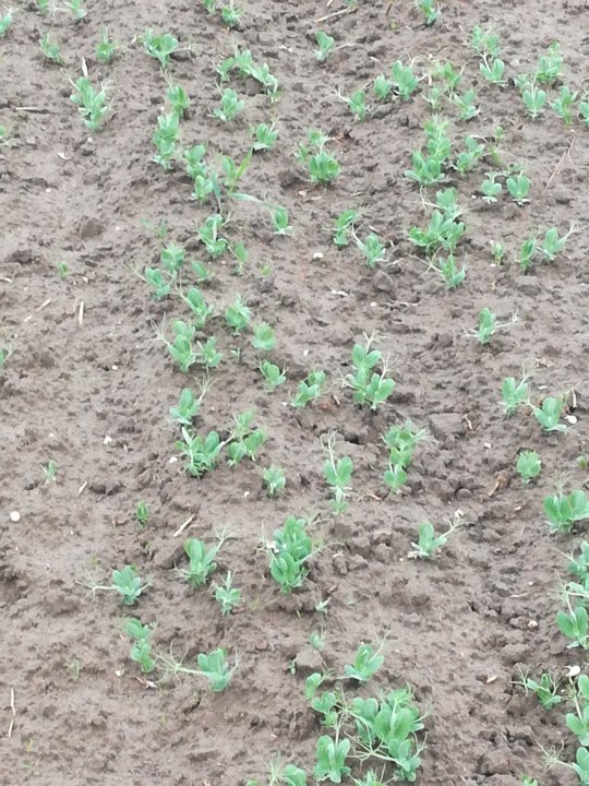 Na pierwszym zdjęciu groch siany około 25 marca. Nie dość, że wschody były dość słabe bo część nasion zgniła to jeszcze na dodatek chwast masakryczny. Na drugim zdjęciu te same nasiona tylko siany jakieś 3 tygodnie później.