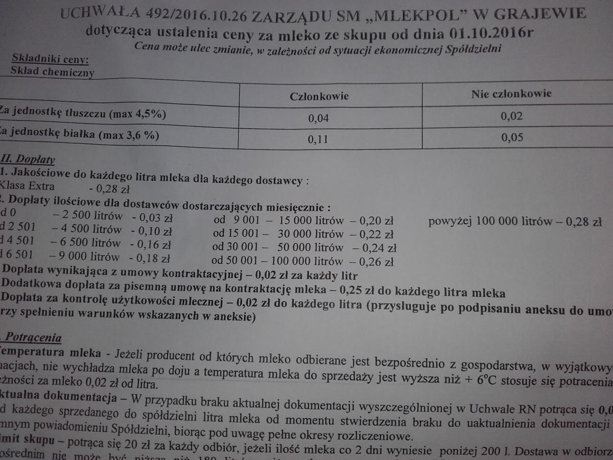 Ceny mleka 2017