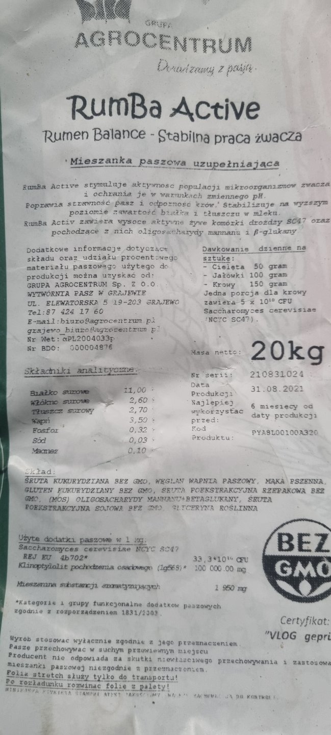 W kale u moich łaciatych sporo ziaren kukurydzy. Dawałem drożdże z dolfosa, zmieniłem na hetafe sano a teraz na kilacis z agrocentrum i dalej poprawy brak. Wszystkie to szczep Saccharomyces cerevisiae. Killacid ma inne symbole ale to chyba dalej te same drożdże? Są drożdże na innych szczepach? Jak tak to zmiano może coś pomóc? Dostają sianokiszonkę, kiszonkę z kukurydzy i pełnoporcjówkę z agrocentrum - finezja 22 % białka. Tł 4,4, białko 3,5, mocznik +/- 200.