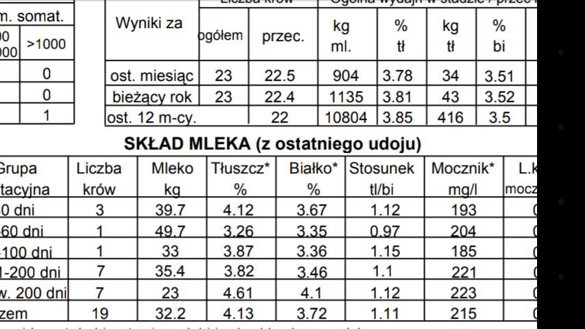 jakie masz parametry mleka przy swojej wydajności?