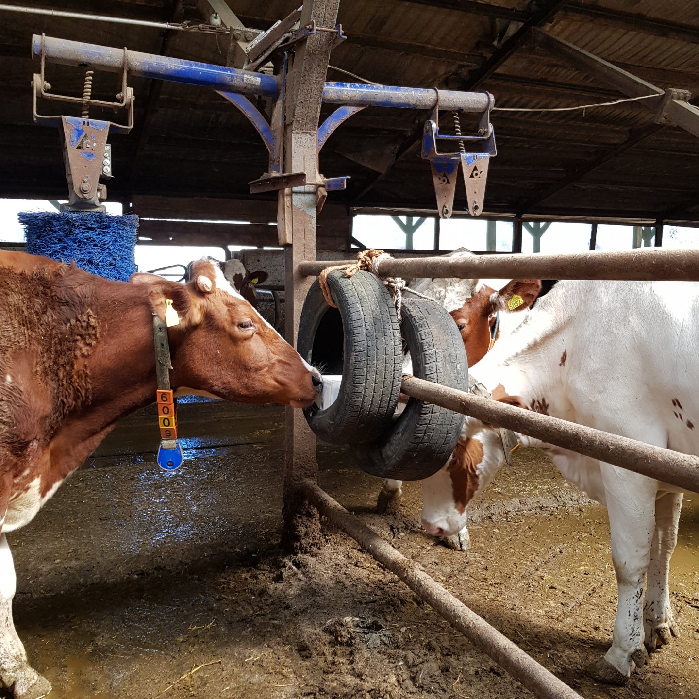 Są piłki duże dla cieląt i dla jalowek (krow) do kulania po ziemii albo zawieszane, są lizawki specjalne na sznurze jak dla koni, są czochradła. A reszta co sam wymyslisz :) Zawiesiłbyś kawał opony bez lizawki i też by się bawiły. Nasze najpierw opone lizaly probowaly gryzc, a potem wziely sie za lizanie.