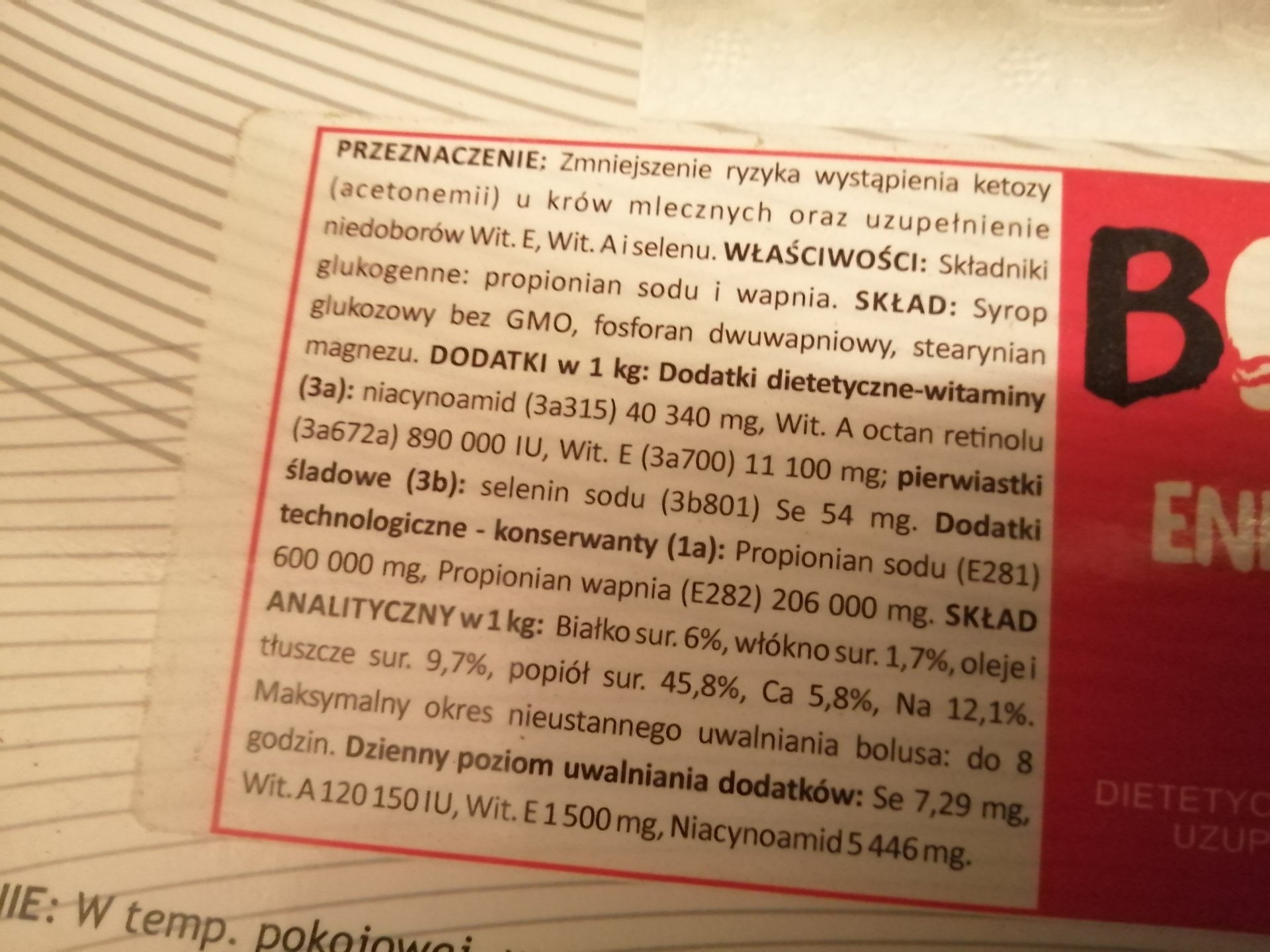 Dziś krowie dałem energetycznego, jest 5 dni po wycieleniu.