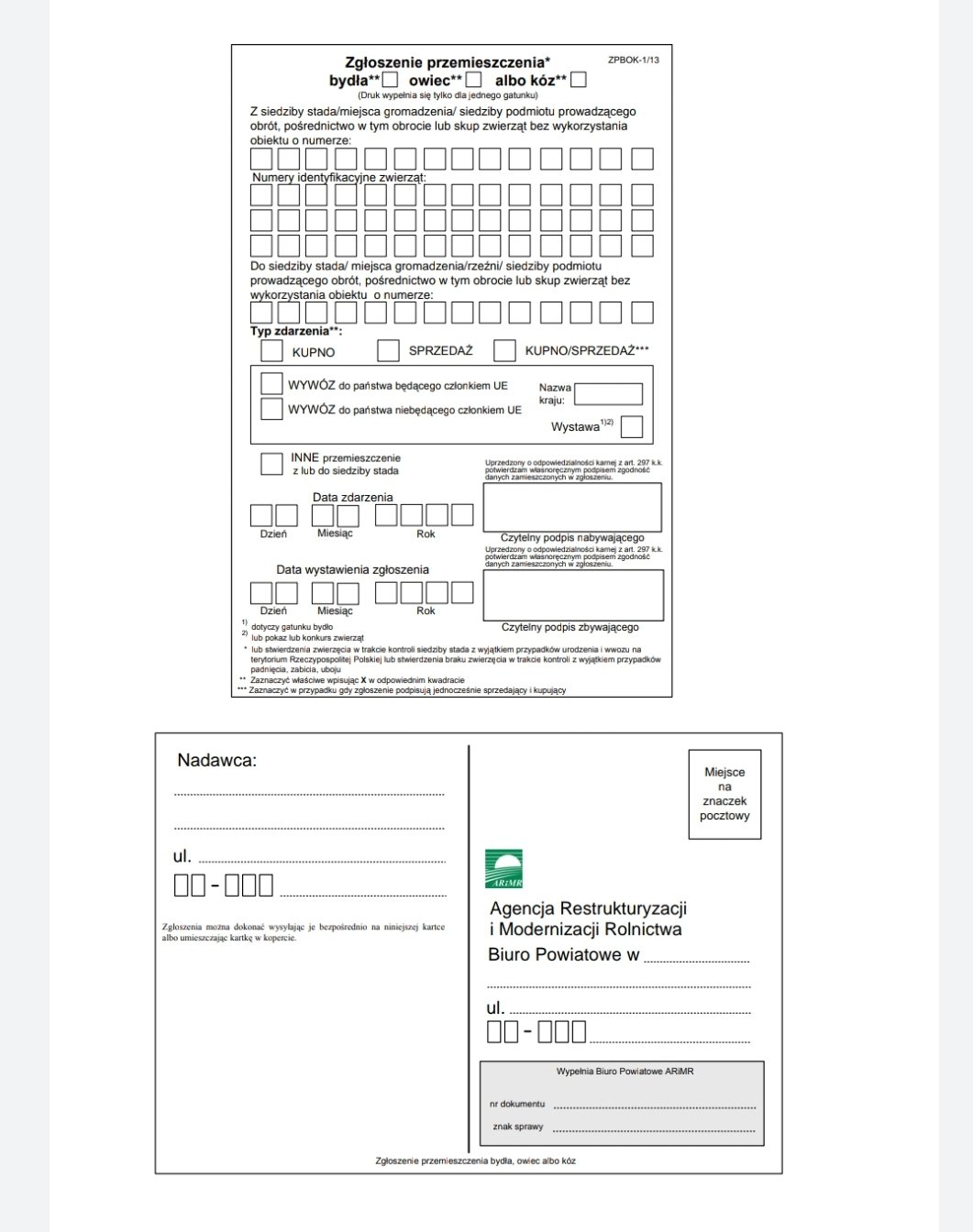Dwa podpisy,daty zgadzały się i zaznaczaleś sprzedaz/kupno i tyle, drugiej strony nic wiecej oprocz podpisania się nie interesowało (nie musiał zglaszać, a sztuka wskakiwała na jego stado)